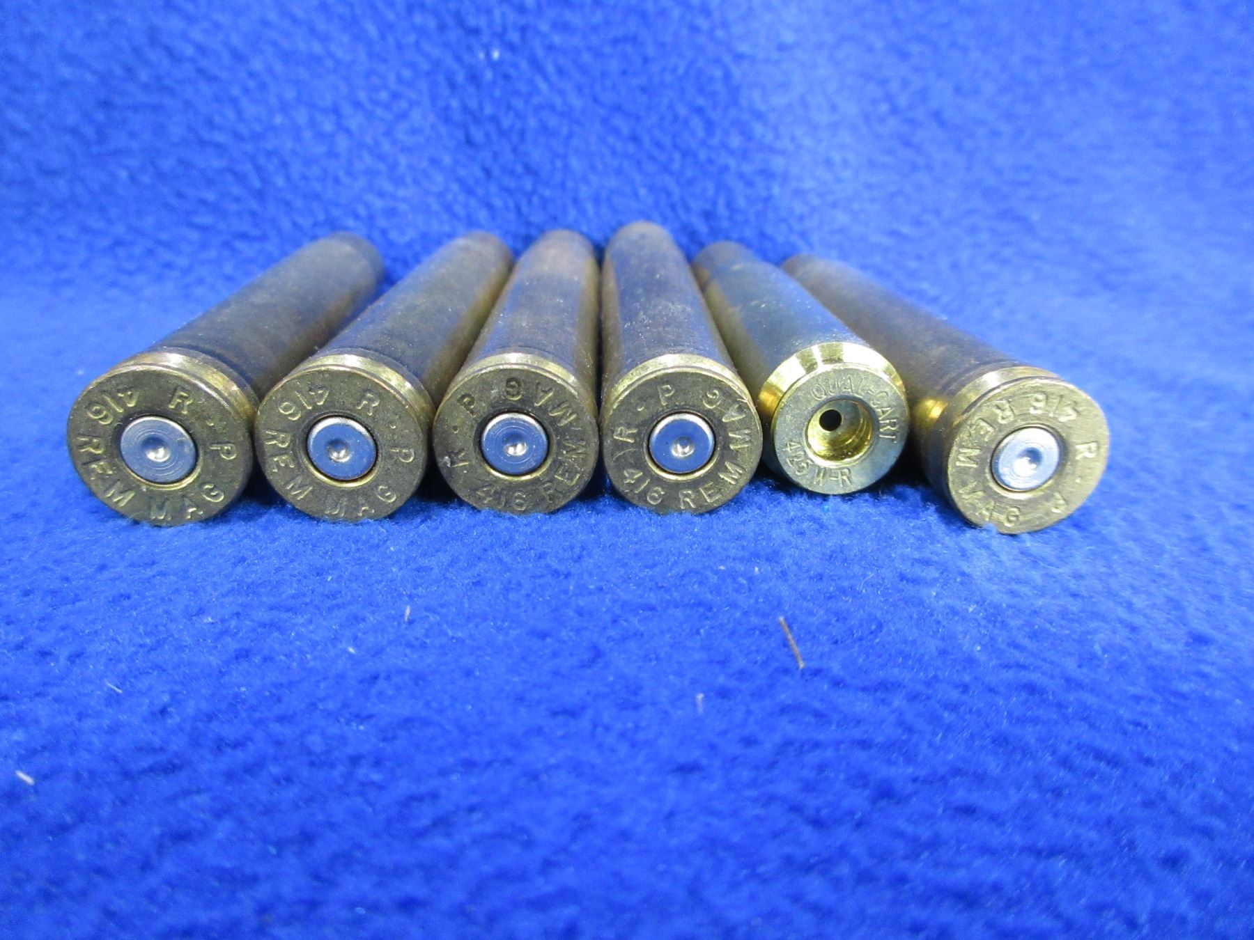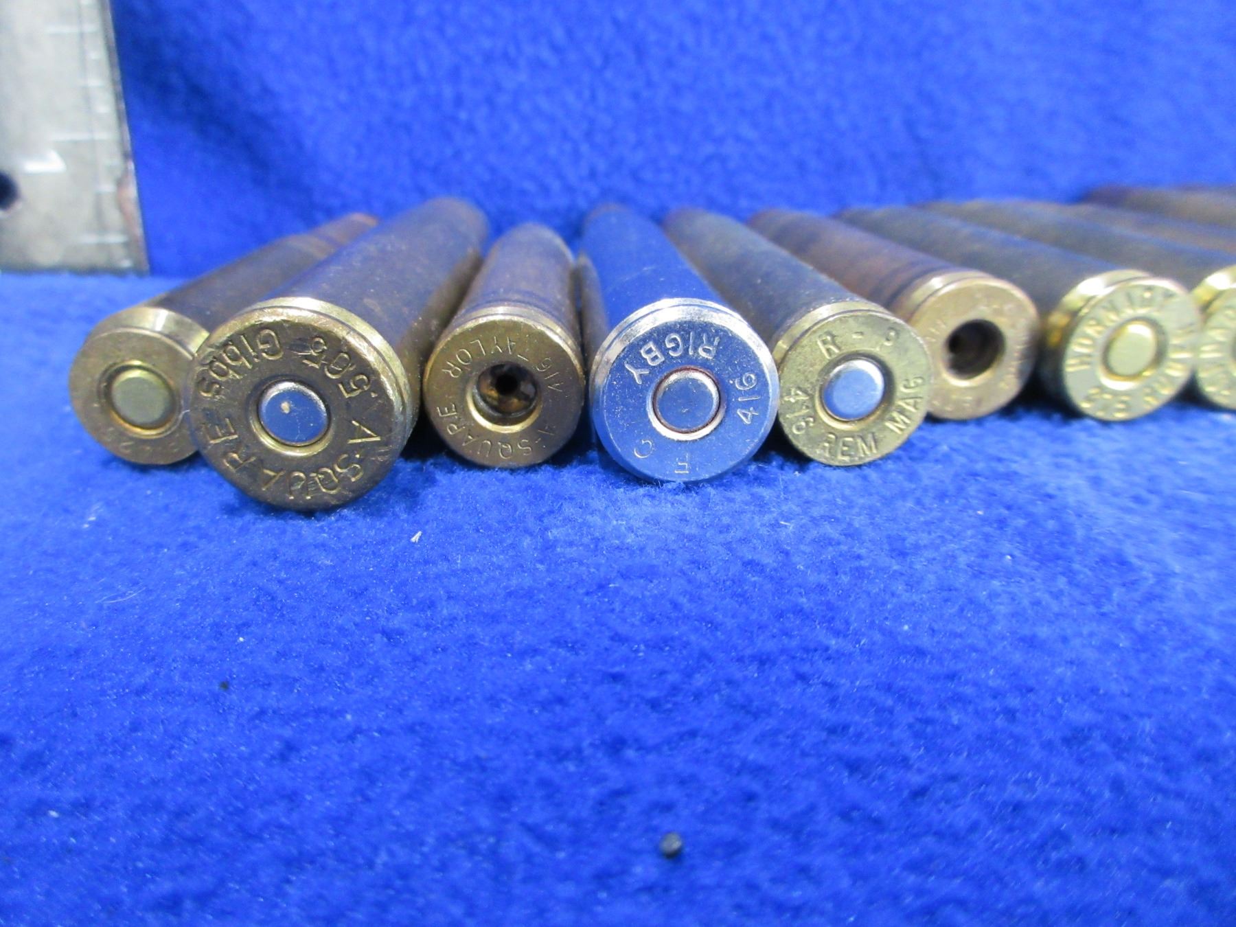 Lot of Misc. Large Bore Rifle Cartridges (Pick Up or Ship by UPS Only) - 10 Cartridges + 6 Brass - 505 Gibbs, 416 Rigby, 375 Ruger, 416 Rem Mag, 416 Taylor, Etc. - In Cuban Cigar Box