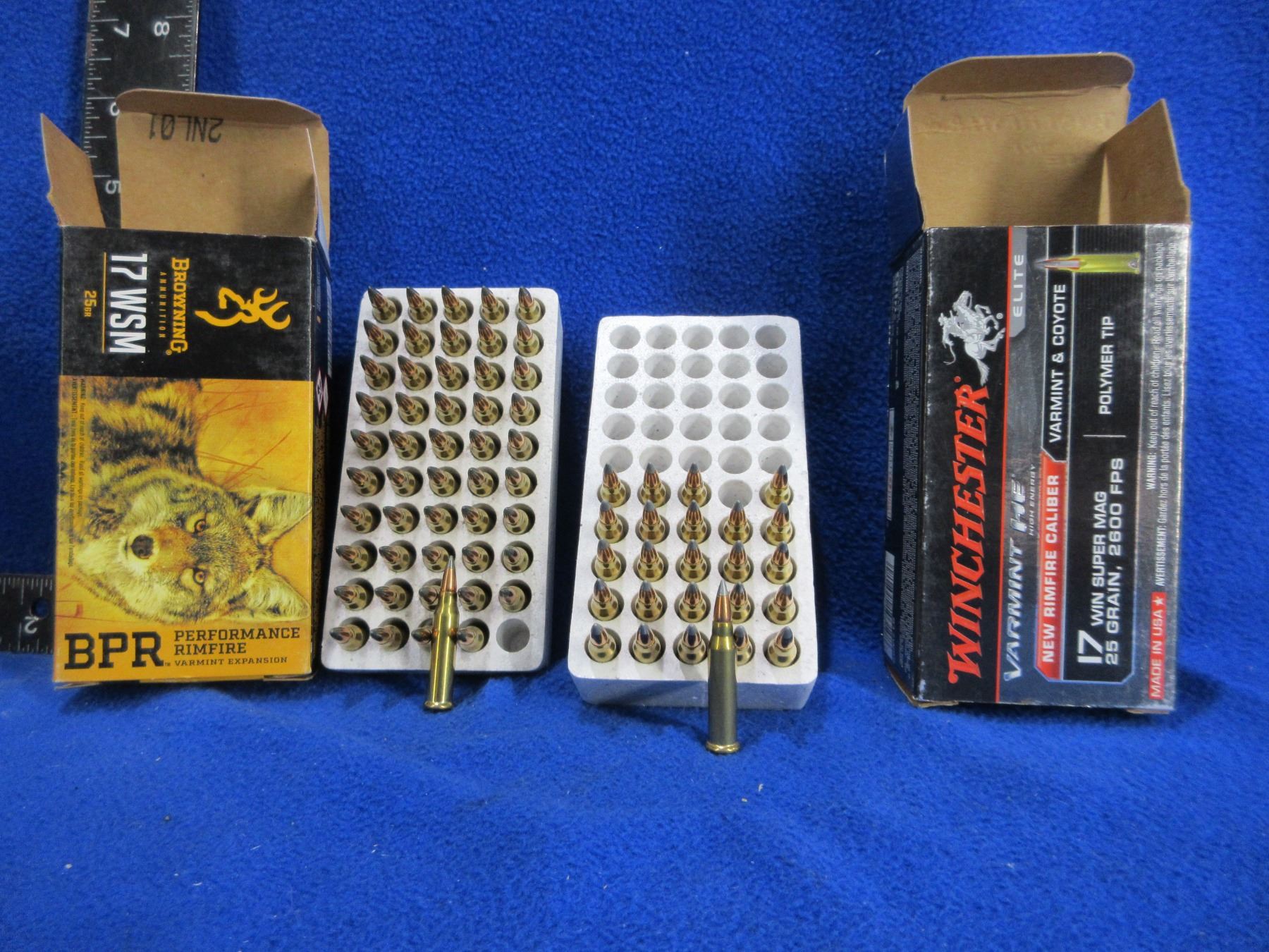 17 WSM 25gr (Pick Up or Ship by UPS Only) Browning and Winchester Cartridges - Box of 50 (Browning), Box of 25 (Winchester)