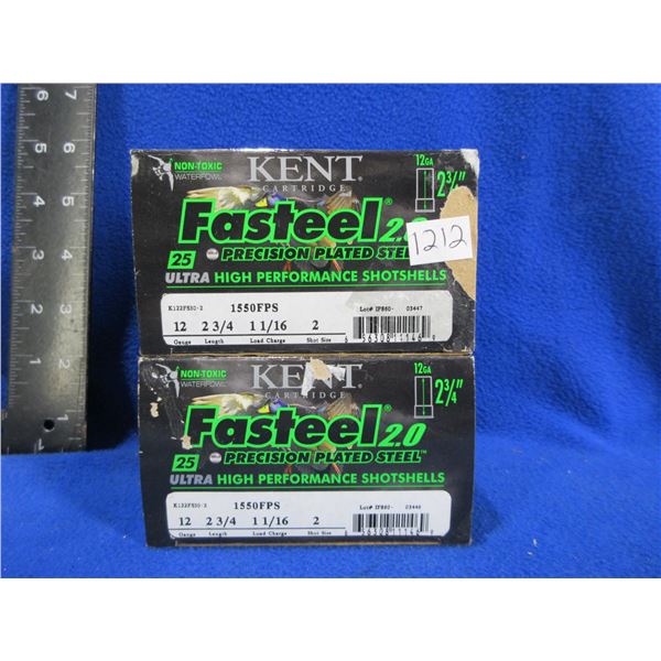 12 Ga. 2 3/4" 2 Shot (Pick Up or Ship by UPS Only) Kent Fasteel 2.0 Shotshells - 2 Boxes of 25