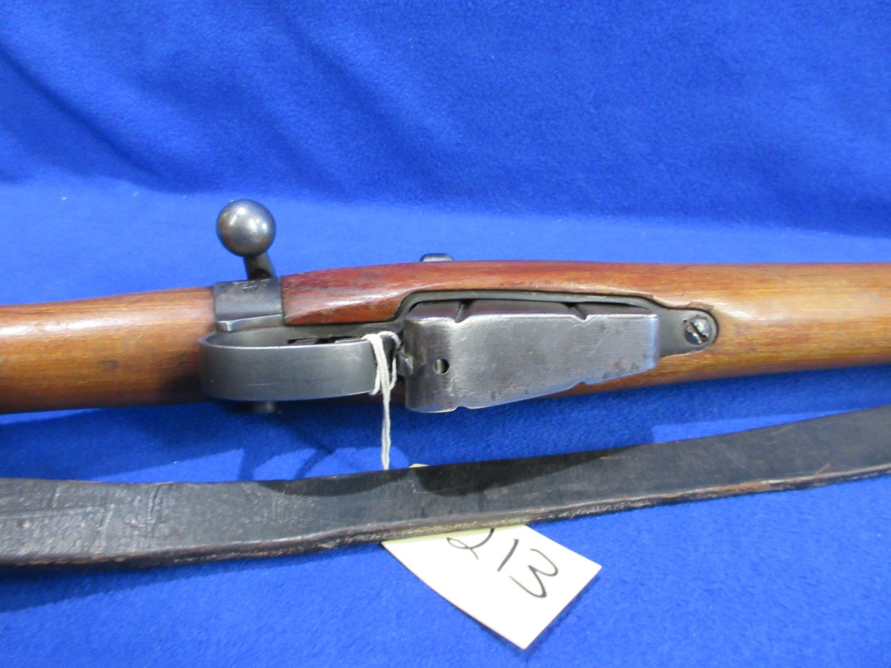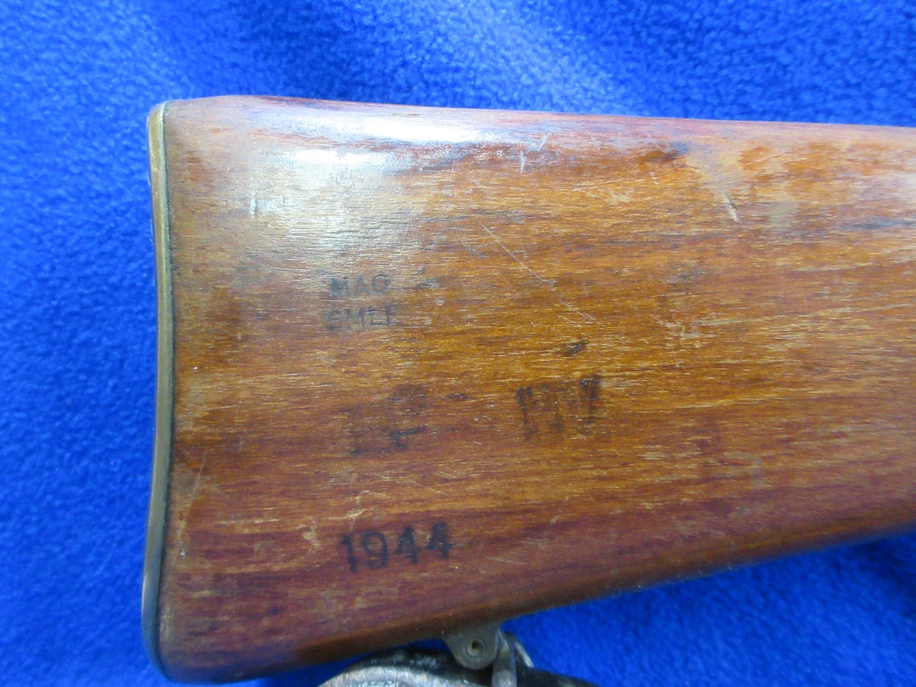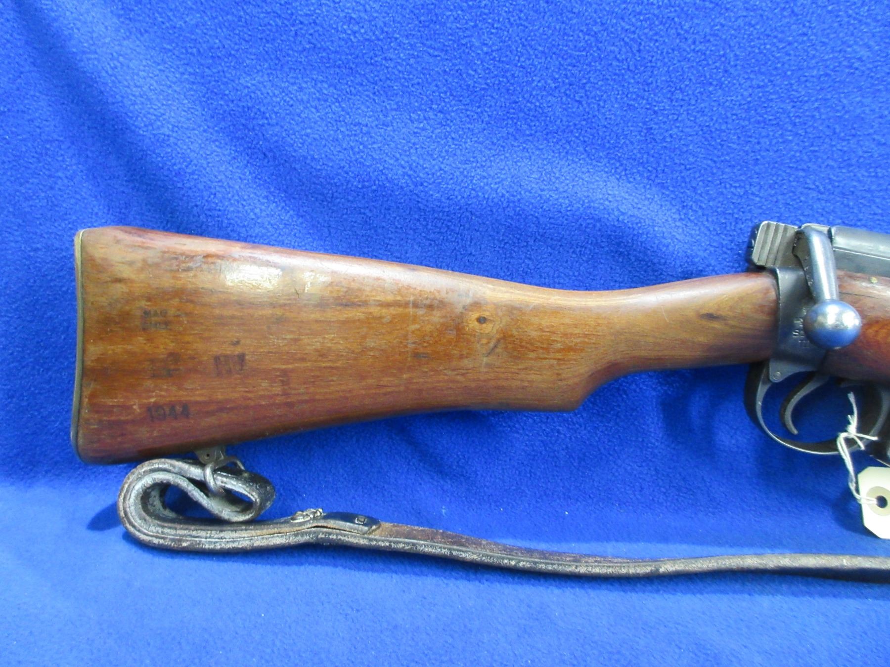 Non-Restricted - Lee Enfield SHTLE III in 303 British - Marked Crown over GR Enfield 1916 and has Broad Arrow. This is a bolt action rifle with removable magazine, action appears to be in good to very good working order. Barrel is 25", rifling is good, bluing is good with some pitting, has both sights, stock is good with usage marks, brass butt plate good, comes with swivels and strap. Ser #33161