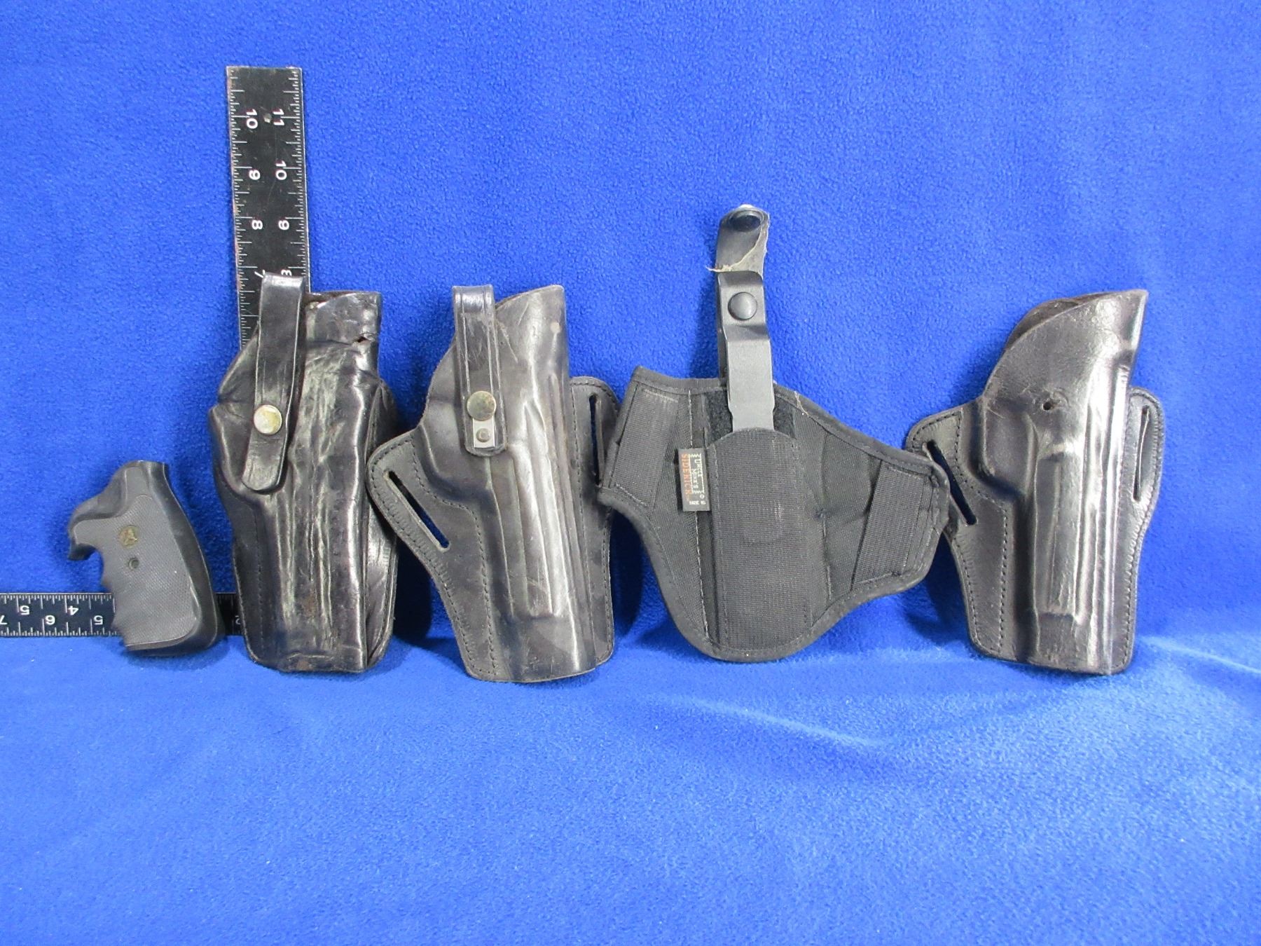 Lot 1238 4 Leather Holsters and a Pachmayr Colt I Pistol Grip