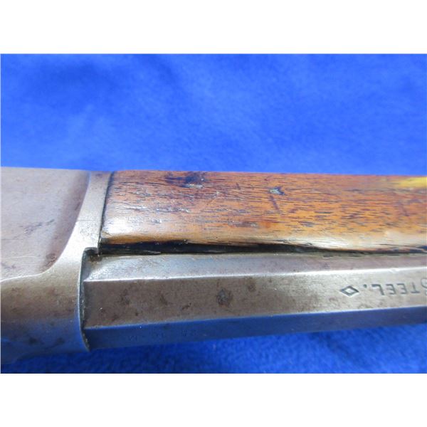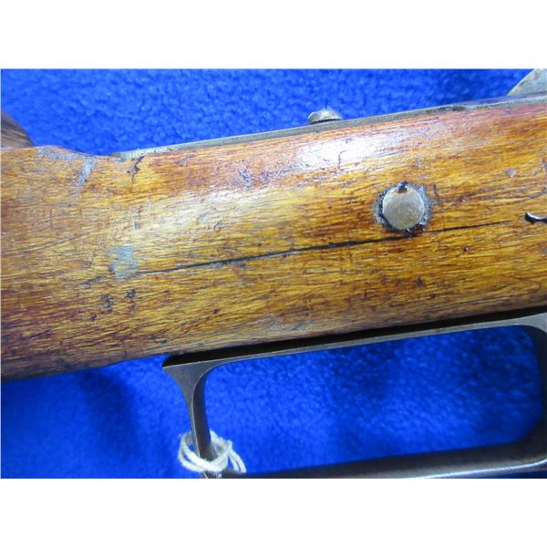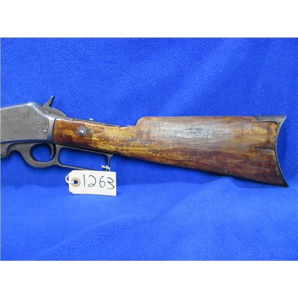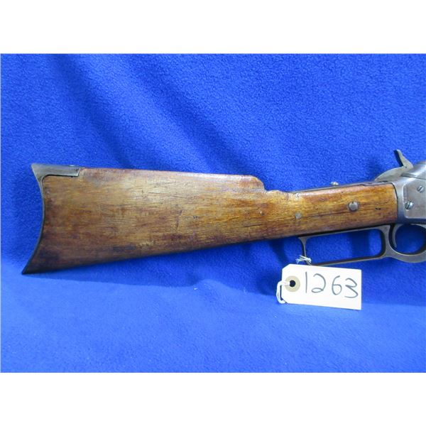 Non-Restricted - Marlin Model 1893 in 25-36 Marlin - Made in approx 1904, this is a lever action rifle with tube magazine, action appears to be in good working order. Octagon barrel is 21 3/4", rifling is fair to good with some pitting, bluing is turning brown or gone, has both sights, stock is poor and had been pinned in the wrist area, forearm has a chip at the top left side at the back, crescent metal butt plate good. Ser #264440