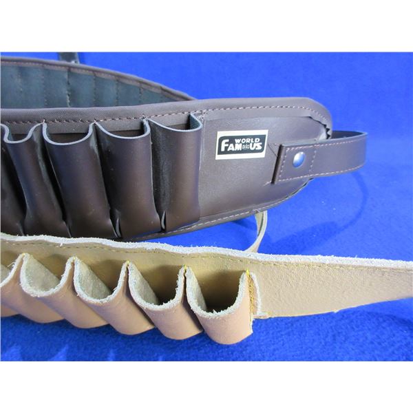 2 - 12 Gauge Shotshell Ammo Belts - World Famous and Unknown Leather - Both hold 25 shotshells
