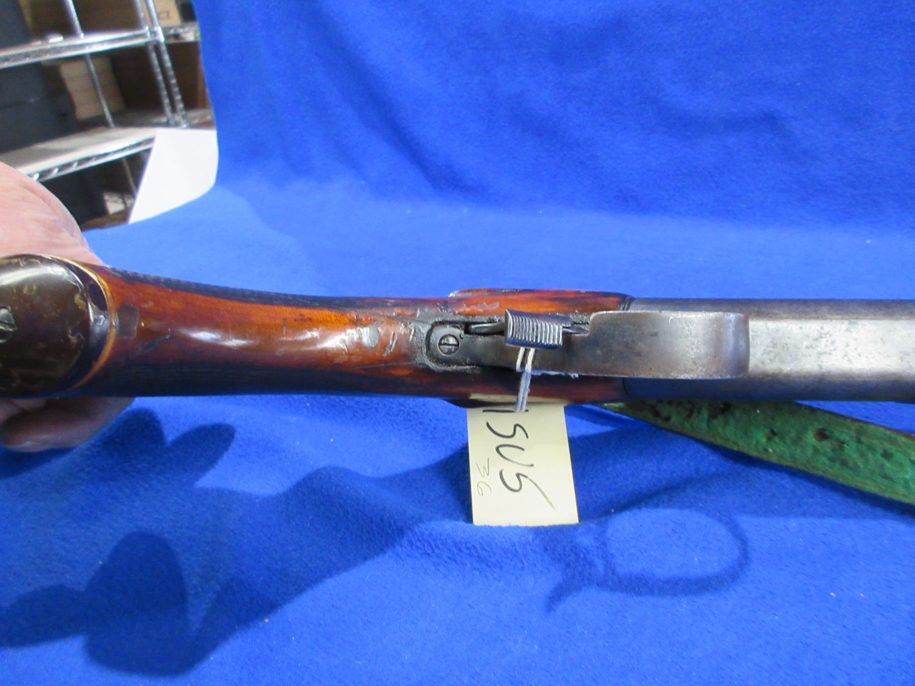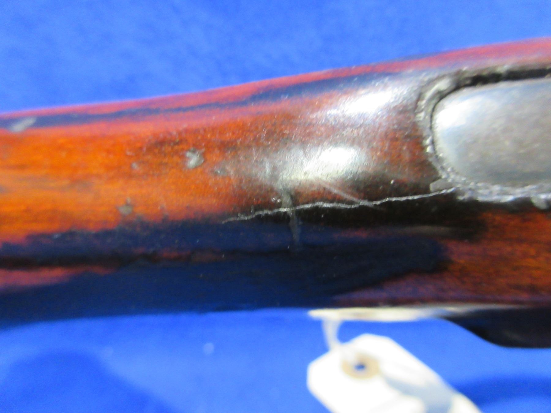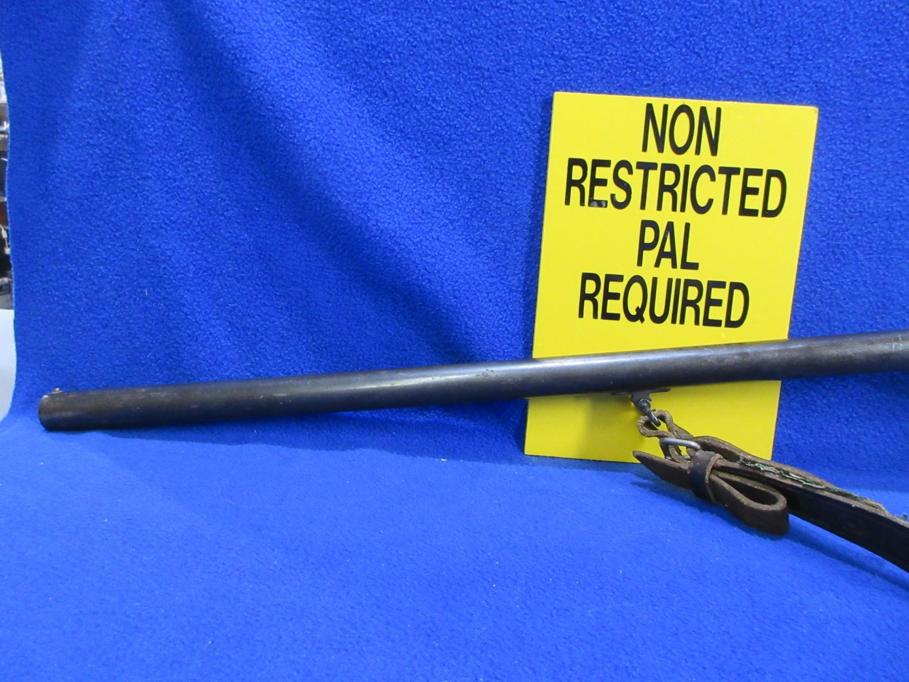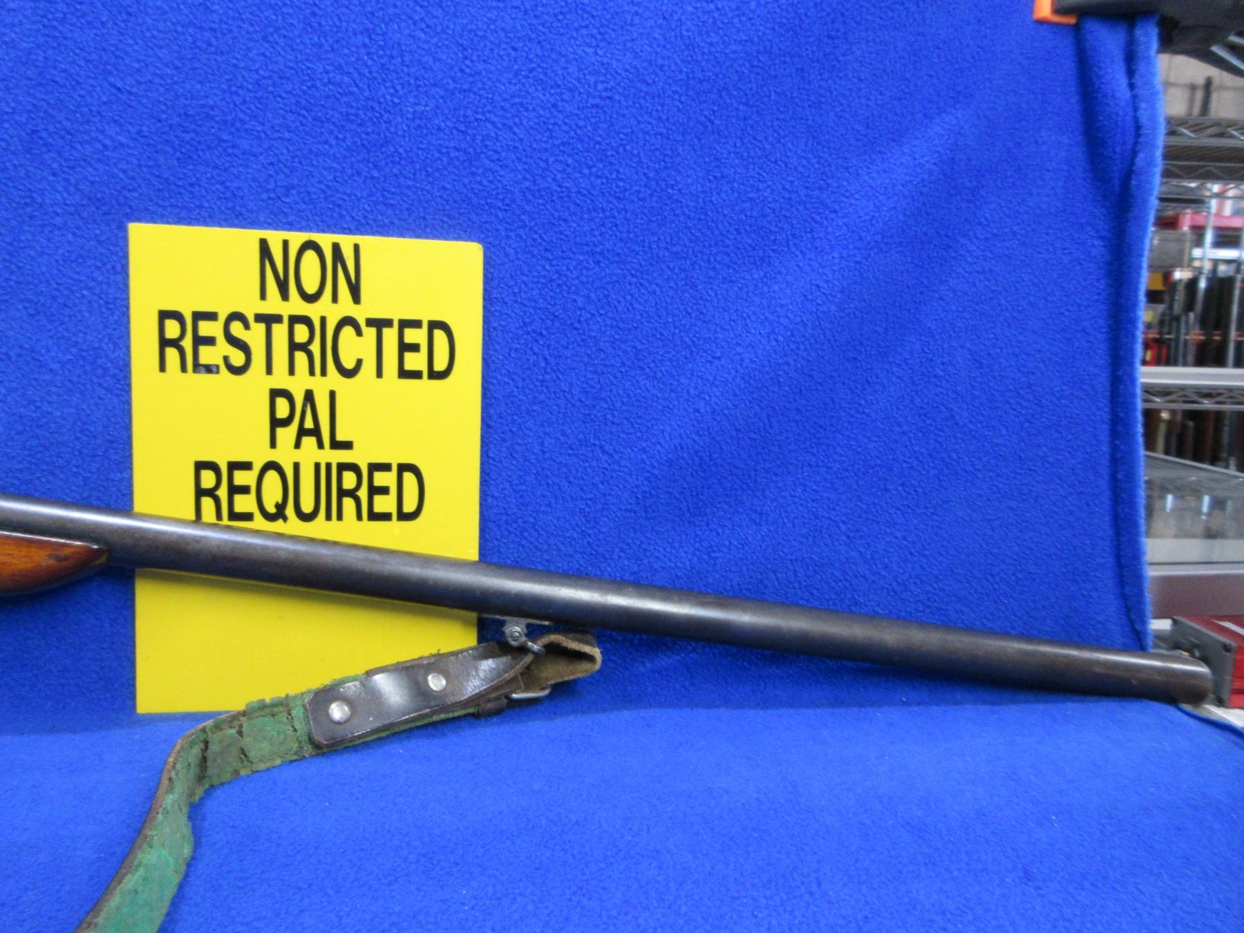 Non-Restricted - Baikal Model IJ-18 in 16 Ga. 2 3/4" - This is a tip up single shot shotgun, action is tight and appears to be in working order but should not be fired as stock is cracked. Barrel is 30", bore is fair to good, bluing has pitting, has bead front sight, stock has cracks in the wrist area, forearm is fair to good, butt plate, comes with swivel and strap. Ser # P96962