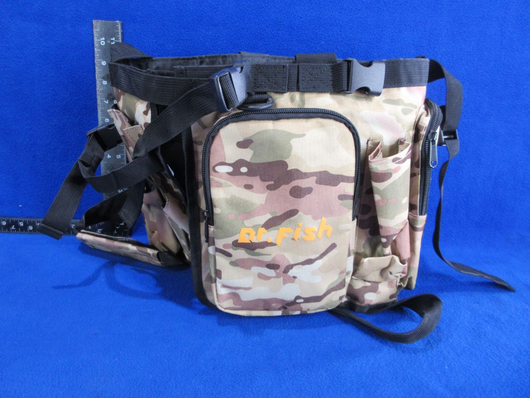 NEW - Dr. Fish 5 Gallon Bucket Tool Organizer - Adjustable Gear Bag with 6 Pockets and 2 Rod Holders for Ice Fishing Tackle Storage