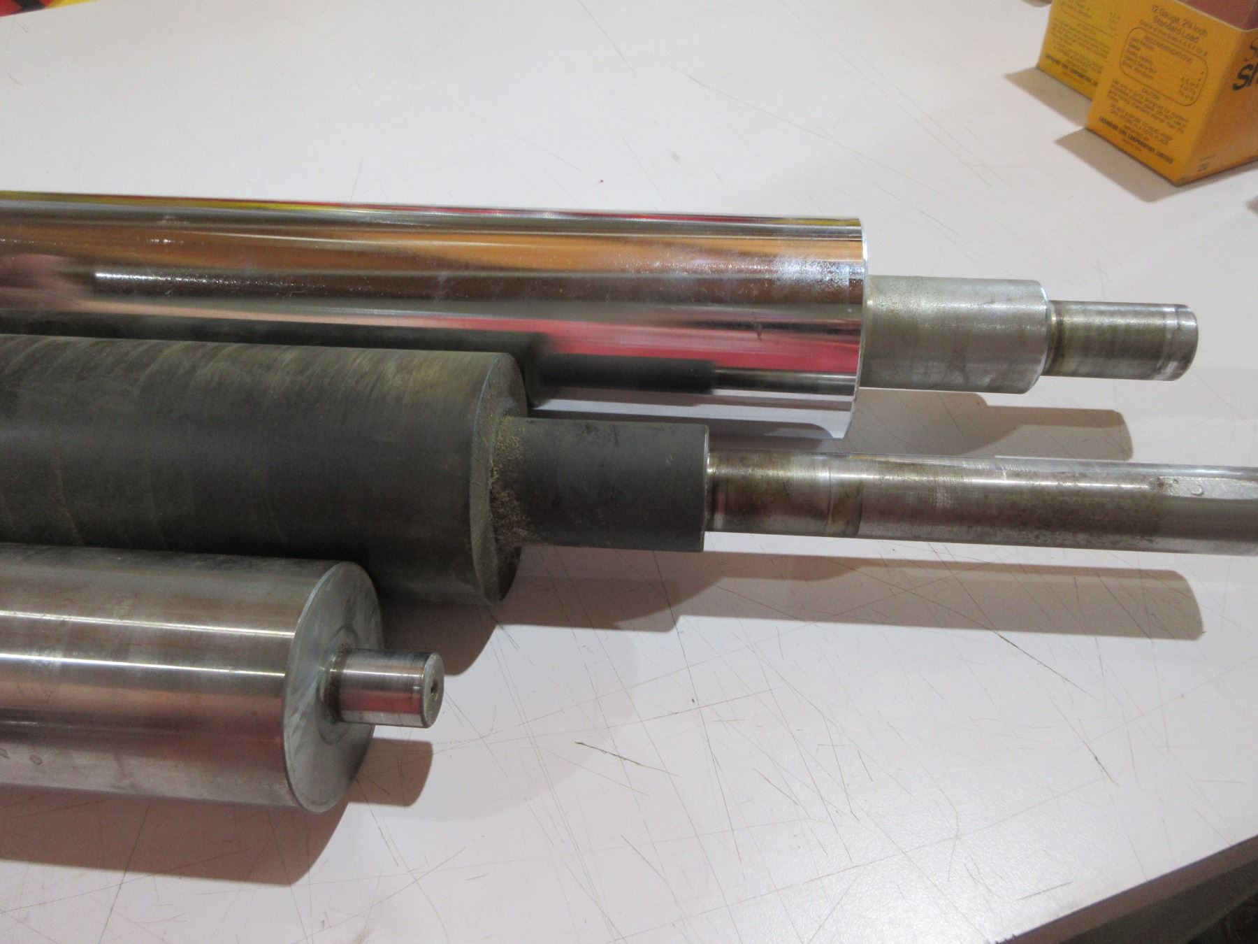 3 Steel Rollers - Approx. 34" x 2.5", 39" x 3" and 43" x 3" is Hard Rubber Coated - PICK UP ONLY (heavy and expensive to ship)