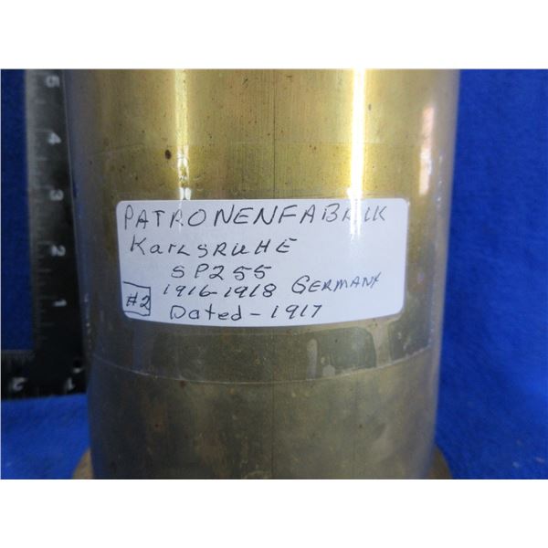 Brass Shell Casing - Patronenfabrik Karlsruhe SP255 1917 - WWI Germany 1916-1918 - 5" Base, 20" Height