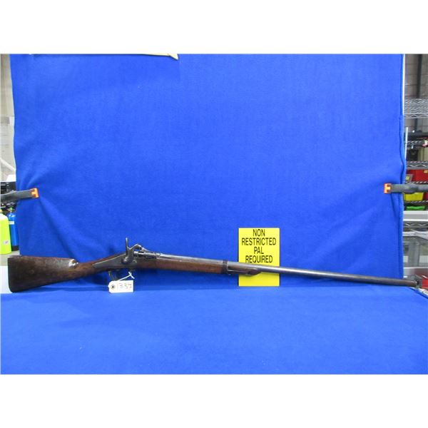 Non-Restricted - Zulu Single Shot in 12 Ga. 2 3/4" - This is a breech load single shot shotgun, breech is not tight but action appears to be in working order. Barrel is 33", bore is fair to good with some pitting, bluing is mostly gone, has bead front sight, stock has a crack behind the top tang, metal butt plate good. Ser # 1553