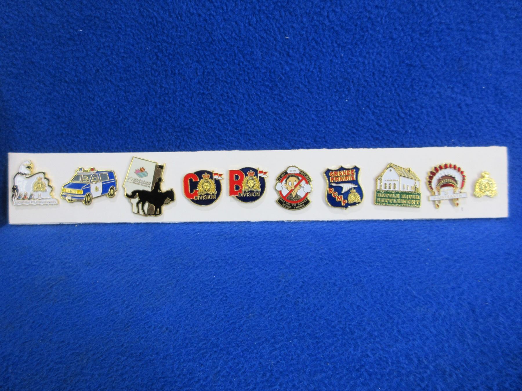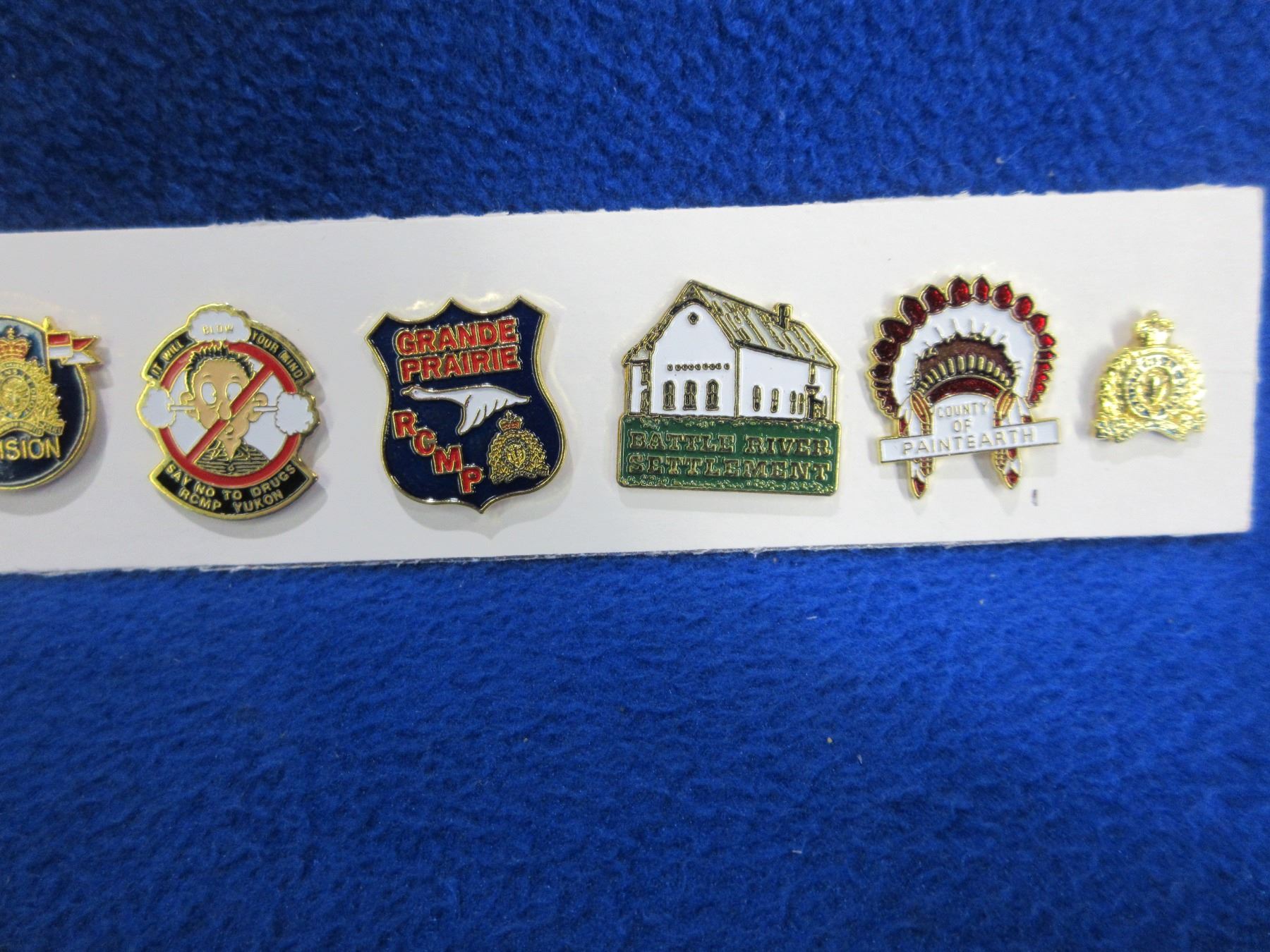 10 Vintage Pins - RCMP, Aboriginal Policing Services, Battle River Settlement, County of Paintearth, Etc.
