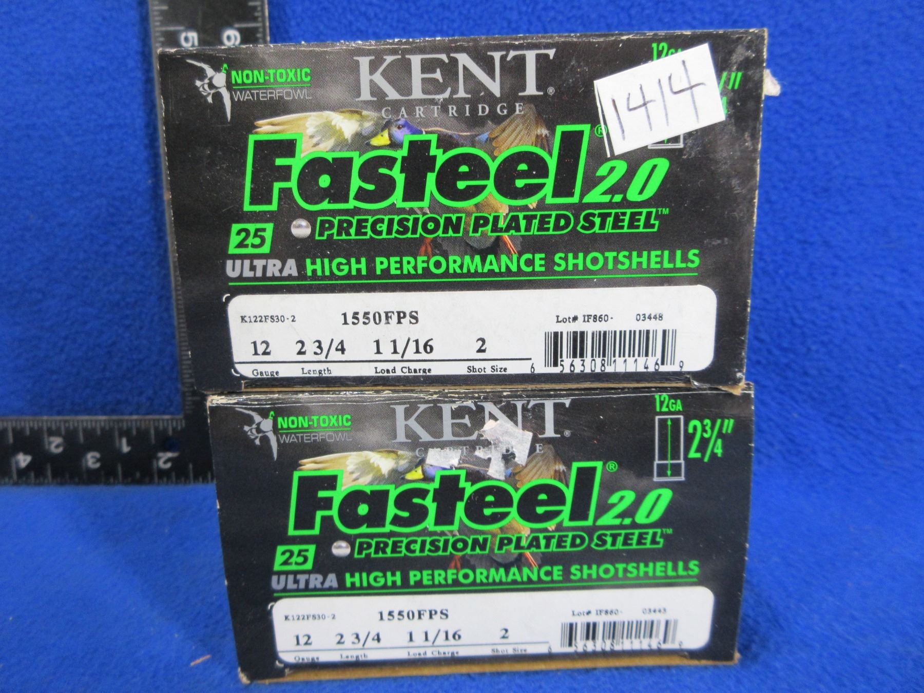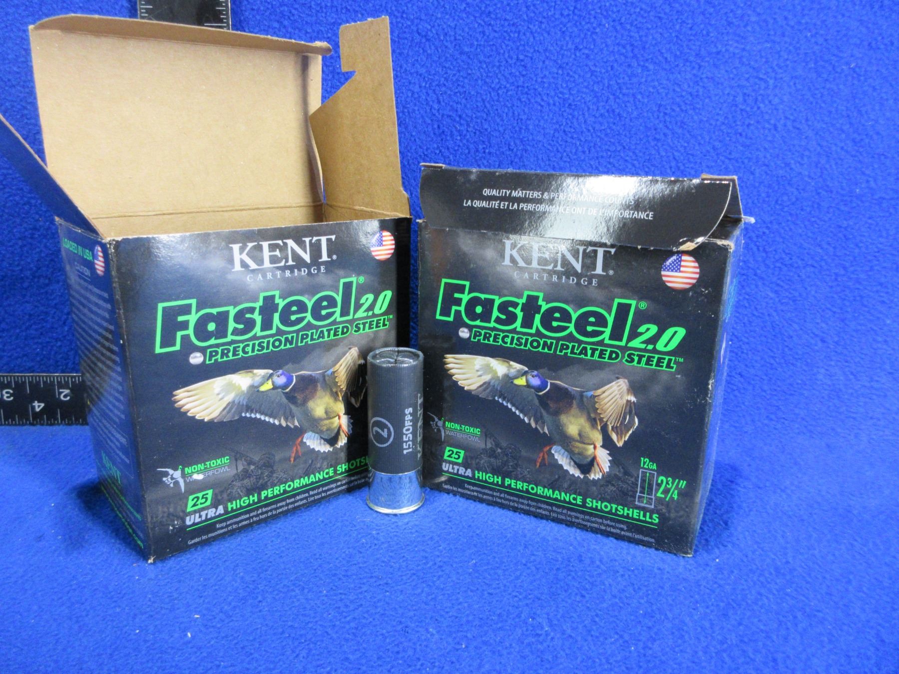 12 Ga. 2 3/4" 2 Shot (Pick Up or Ship by UPS Only) Kent Fasteel 2.0 Shotshells - Box of 25, Box of 19