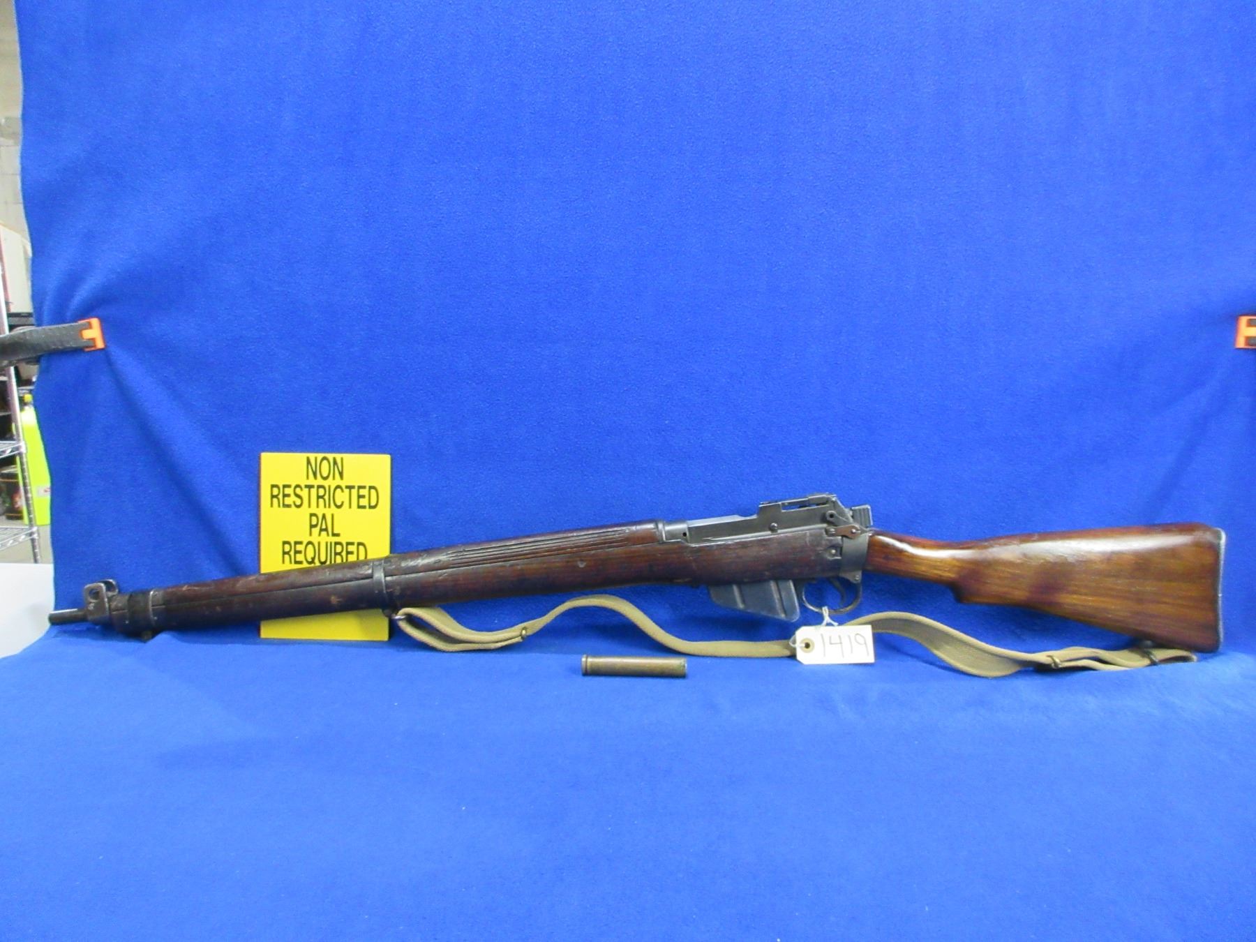 Non-Restricted - Lee Enfield No 4 Mk I in 303 British - This is a bolt action rifle with removable magazine, action appears to be in good working order. Barrel is 25", rifling is good to very good, bluing is good, has both sights, full wood stock is good for age with many usage marks, metal butt plate good, comes with brass oiler with broad arrow in the butt, swivels and strap. Ser #FC29770A