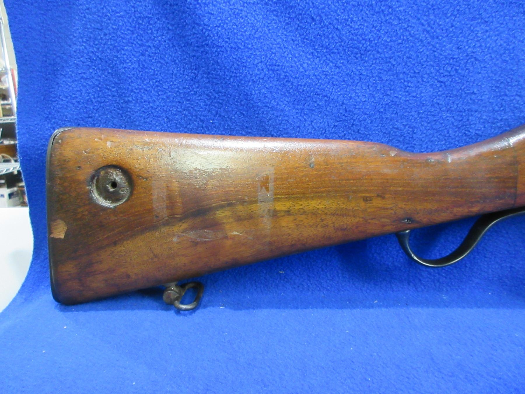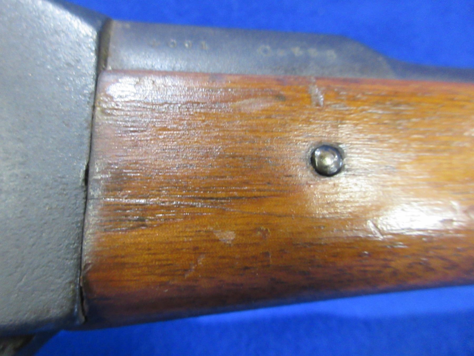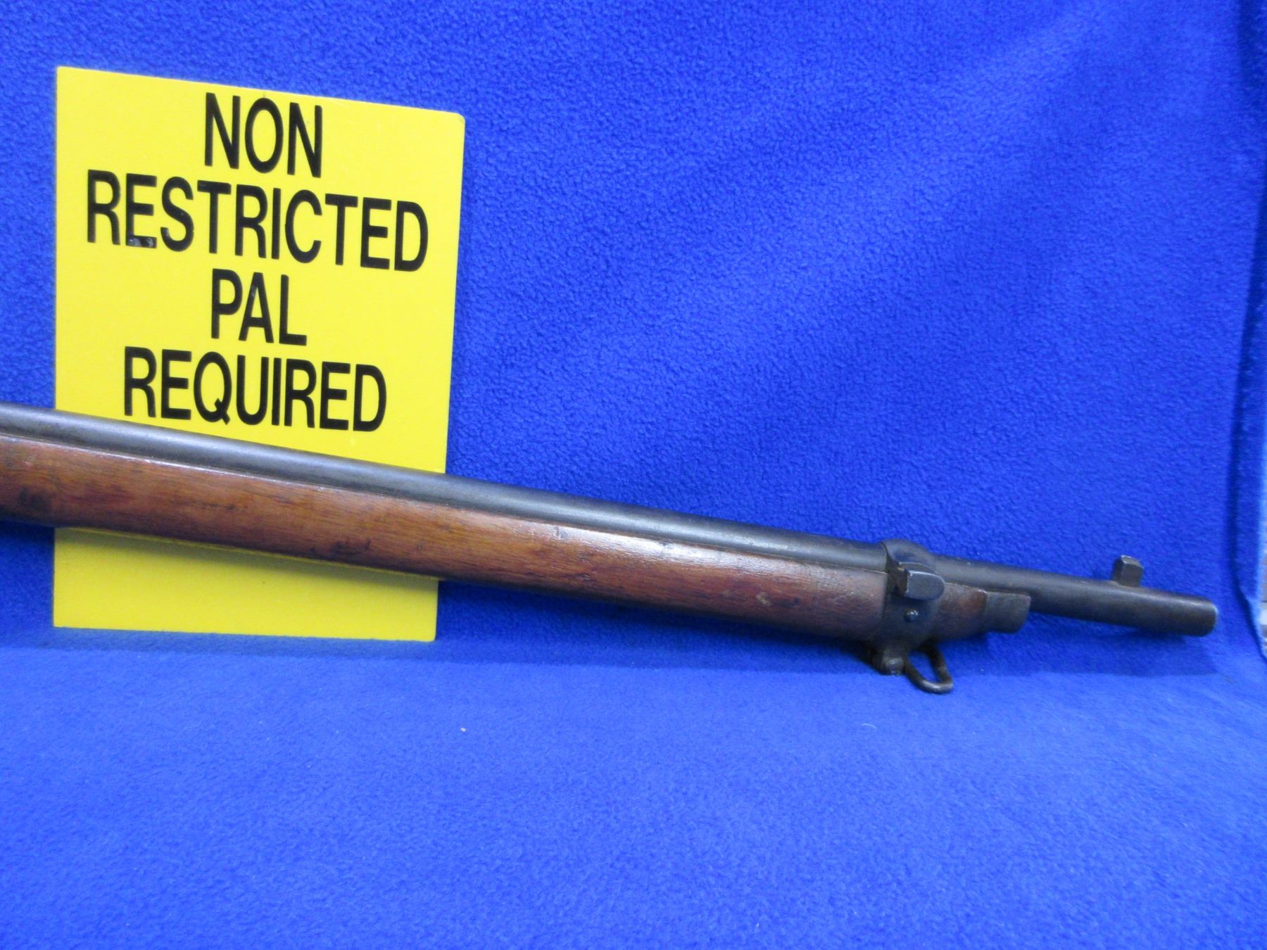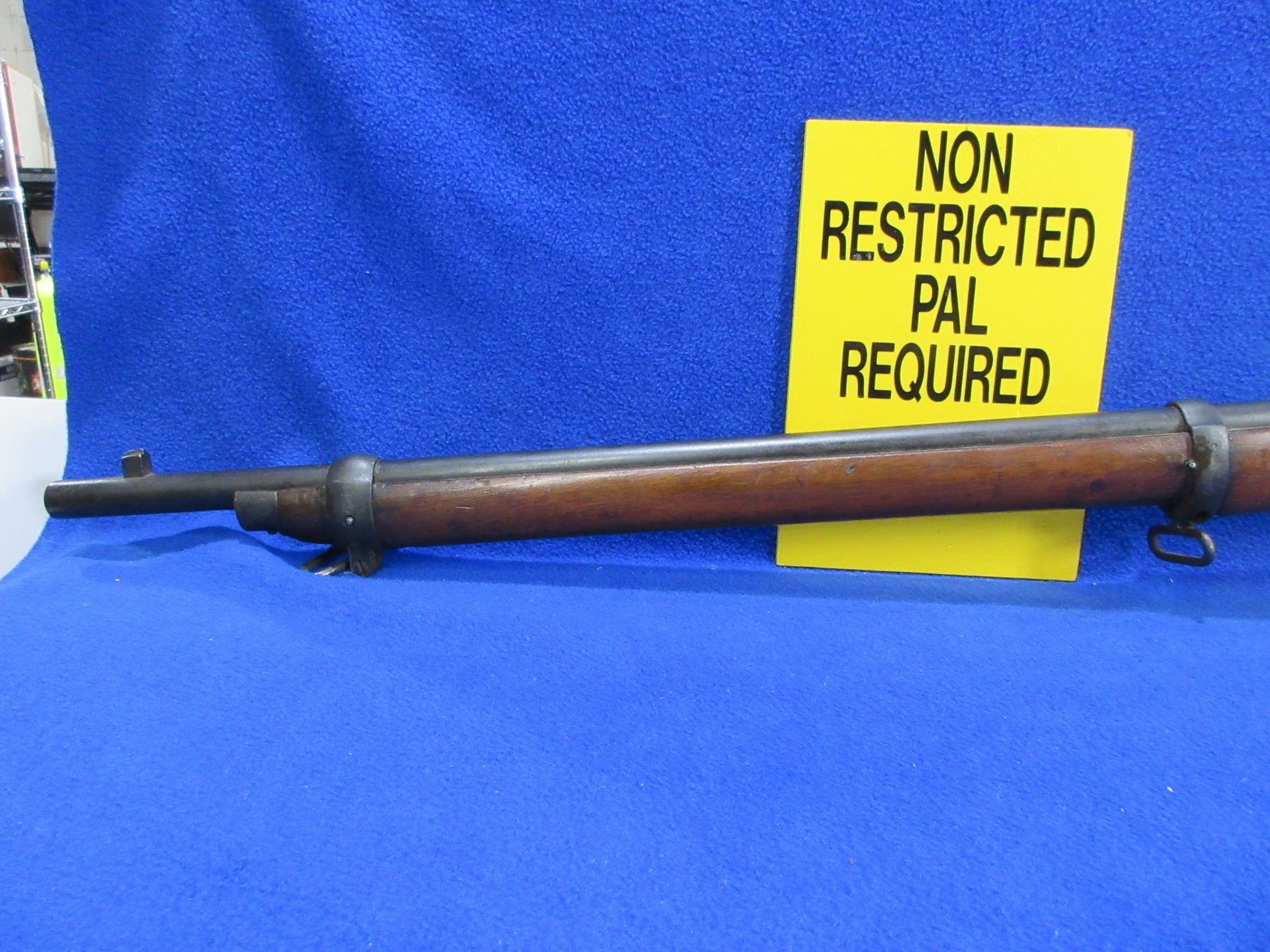 Non-Restricted - Martini-Henry-Enfield III Falling Block in 303 British - Frankford Arsenal rebarreled from 577 - This is a single shot falling block rifle, action with broad arrow appears to be in good to very good working order. Barrel is 30", rifling is fair to good, bluing is good, has both sights, full wood stock is good with many usage marks, forearm has hairline cracks on both sides in front of the action, metal butt plate good, comes with swivels. Ser # 4091