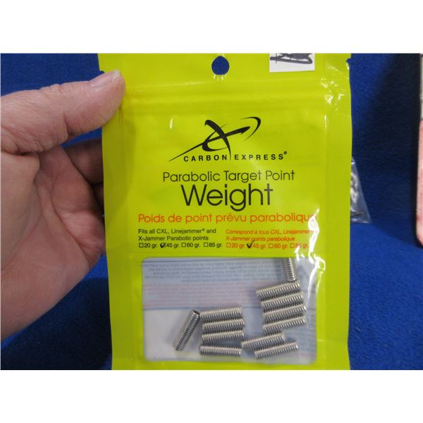 Archery Combo Points (3 Packs of 12, 11/32 250gr & Parabolic Target Points 70gr), Parabolic Target Point Weights (Carbon Express 45gr), Bear Archery R & L Tab - All New Old Stock