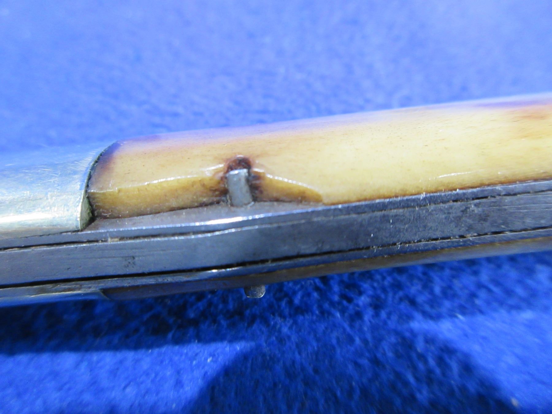 Vintage Folding Blade Knife - Solingen, 4" Blade - Handle appears to be bone or antler and has a small chip and a hairline crack on 1 side