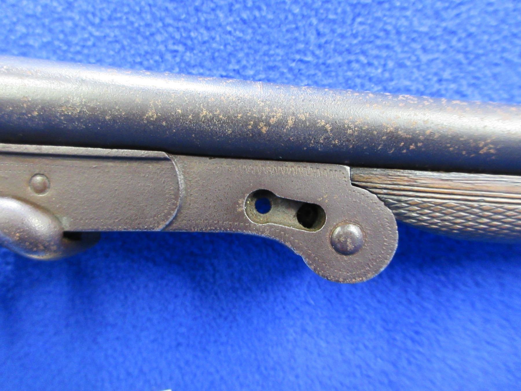 Non-Restricted - Belgian Hammer SXS in 410 Ga. 2 1/2" - Marked Crown over ELG - This is a tip up hammer SXS shotgun with side lever opening, action appears to be in working order but appears locking pin for folding mechanism is missing, action is tight. Barrels are 26", bores are fair to good, bluing has rust and pitting, has bead front sight, stock is good with many usage marks, forearm is good with many usage marks, metal butt plate good. Ser # 3923