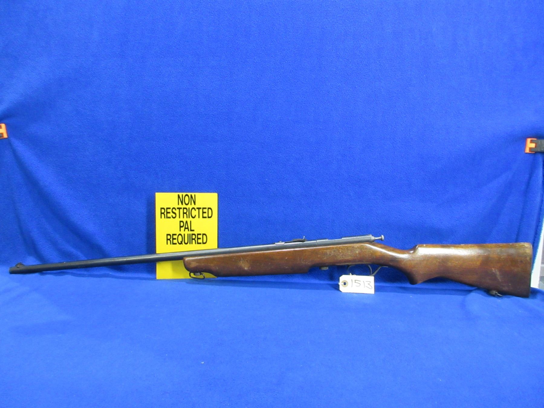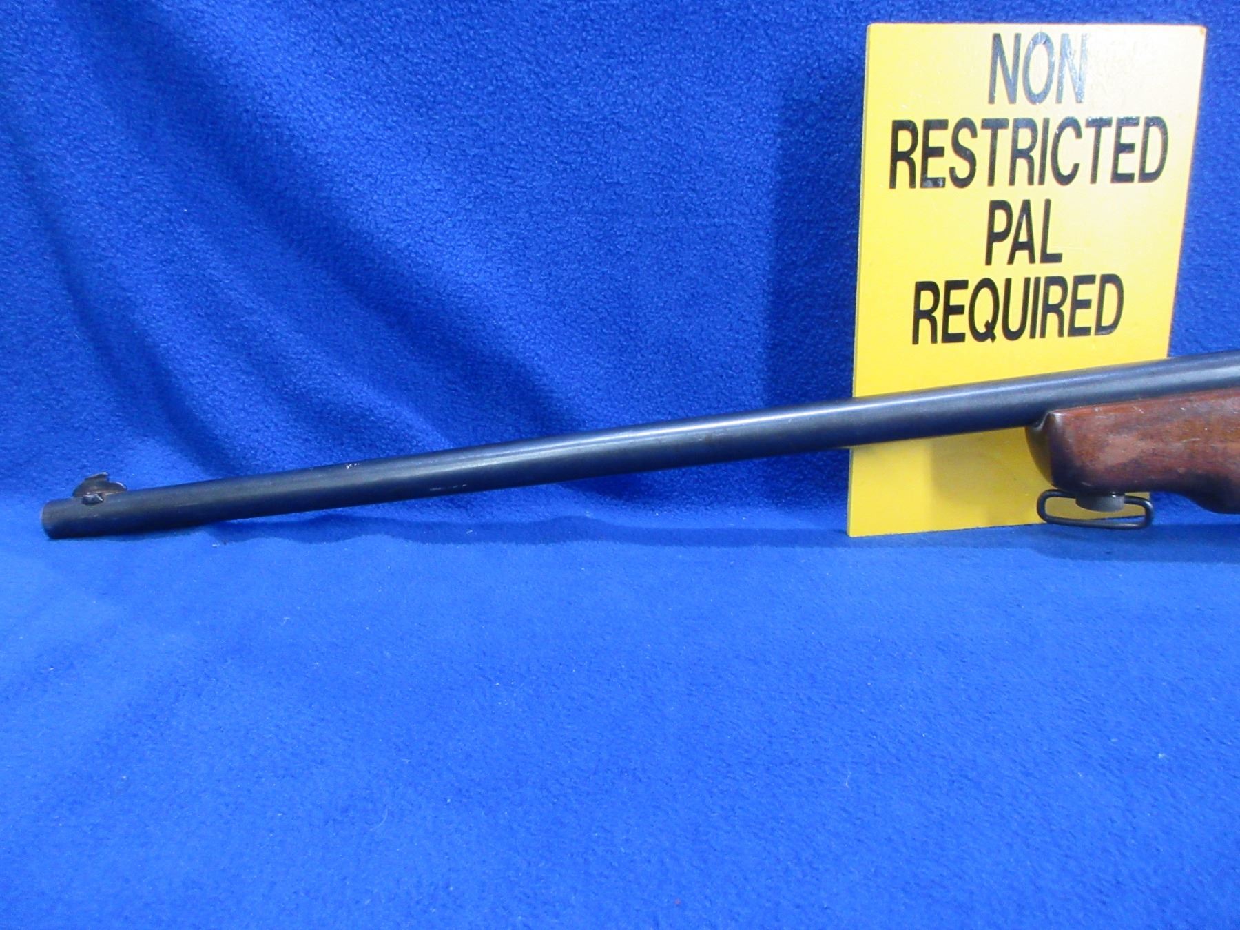 Non-Restricted - Cooey Ranger in 22 Cal - This is a single shot bolt action rifle, action appears to be in good working order. Barrel is 27", rifling is good, bluing is good with some pitting, has both sights, stock is good with usage marks, metal butt plate good, comes with swivels. Ser # None