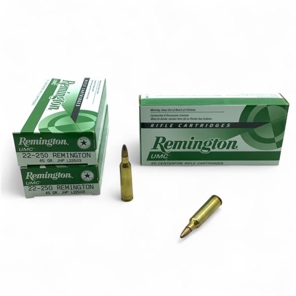Remington UMC 22-250 Rem, 45 Grain JHP Ammunition, 60 Rounds