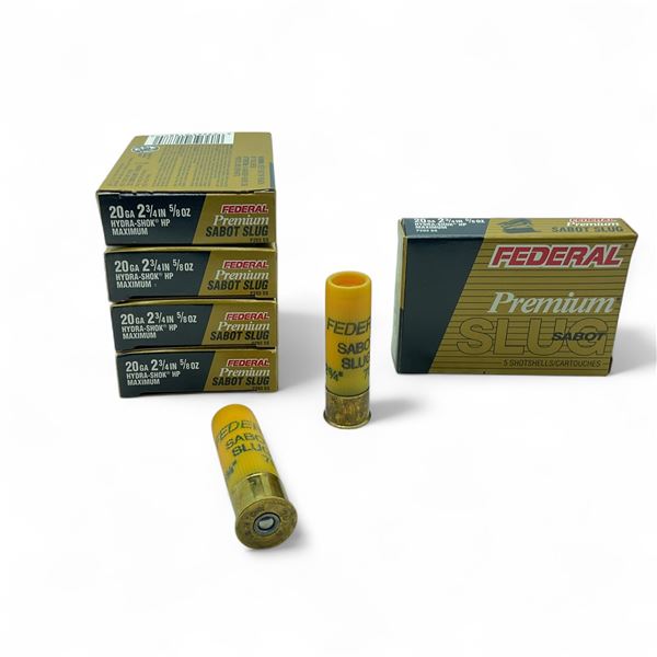 Federal Premium 20 Ga, 2-3/4", 5/8 oz Hydra-Shok HP Maximum Sabot Slug Ammunition, 25 Rounds
