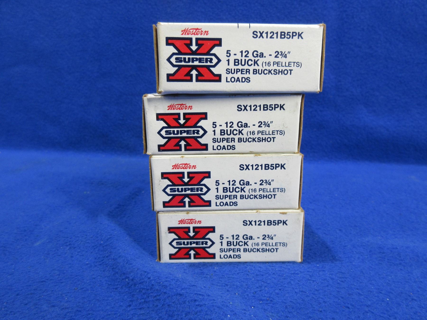 12 Ga. 2 3/4" 1 Buck (Pick Up or Ship by UPS Only) Western SuperX Shotshells - 4 Boxes of 5