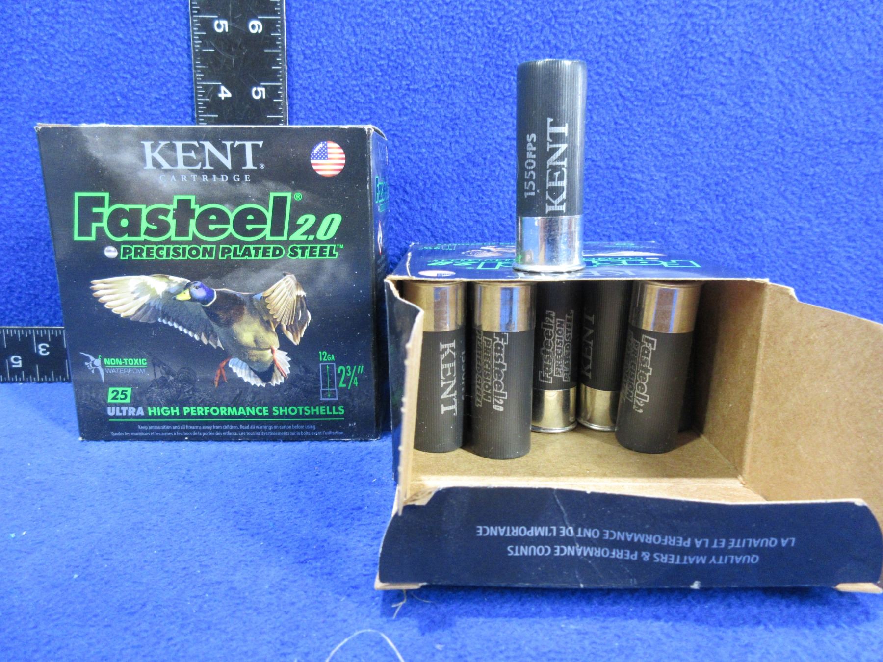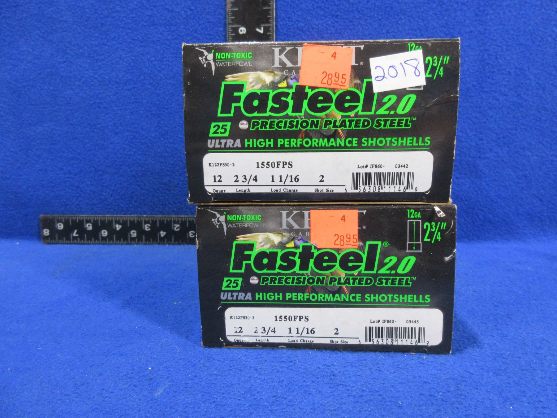 12 Ga. 2 3/4" 2 Shot (Pick Up or Ship by UPS Only) Kent Fasteel 2.0 Shotshells - Box of 25, Box of 19
