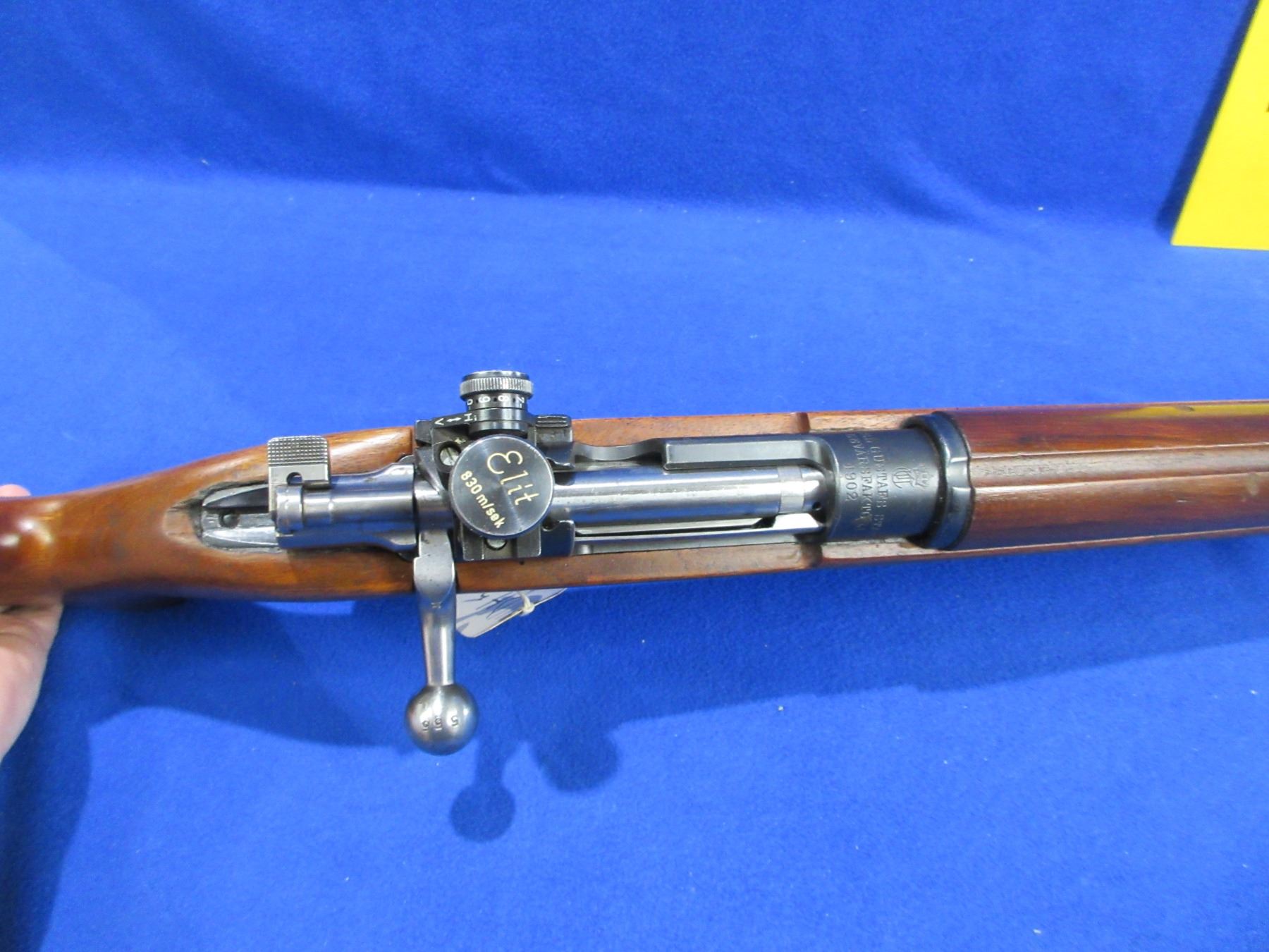 Non-Restricted - Carl Gustaf Model CG63 in 6.5x55 - Stamped 1902 on barrel, this is a bolt action rifle with floorplate magazine, action appears to be in good to very good working order. Barrel is 29", rifling is good to very good, bluing is good, has both sights, rear sight is an Elit 830m/sek peep sight, stock is good to very good with usage marks, butt plate good, comes with swivels. Ser #120555