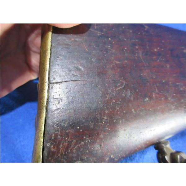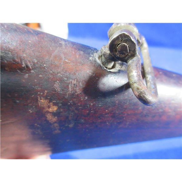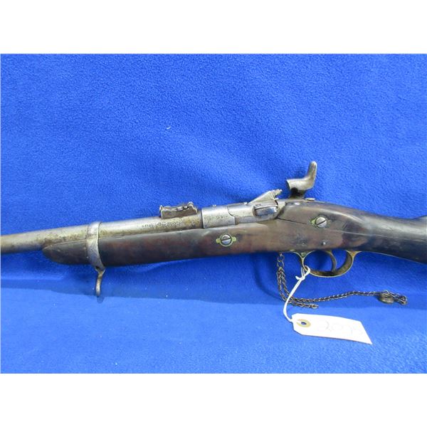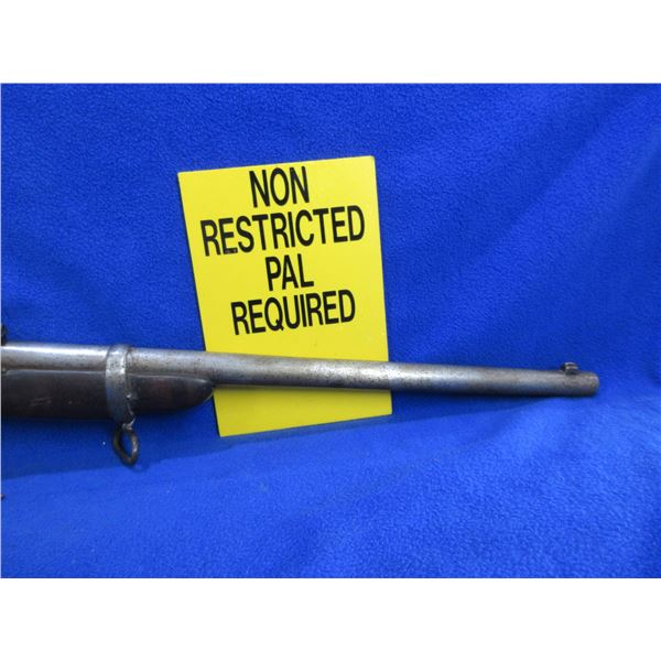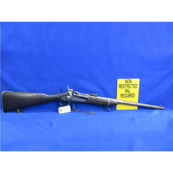 Antique - No PAL Required -Tower Carbine Breech Load in 577 Snider- Gun is unsafe to shoot and is possibly Khyber Pass reproduction. This is a breech-loading single-shot rifle, action appears to be in poor working order as is very sloppy. Barrel is 19 1/4", rifling is fair to good, bluing is gone, has both sights, stock has multiple cracks, brass butt plate good. Ser # BSA00