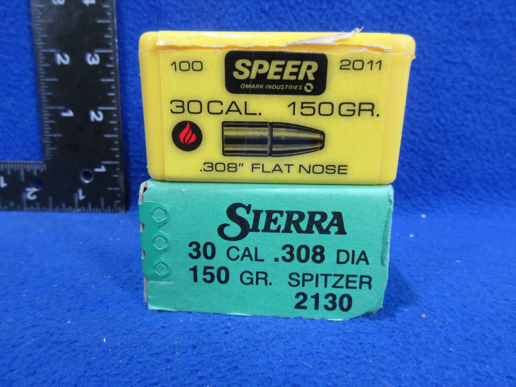 30 Cal. .308" 150gr Sierra and Speer Bullets - Box of 100 (Sierra Spitzer), Box of 22 (Speer FN)