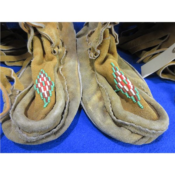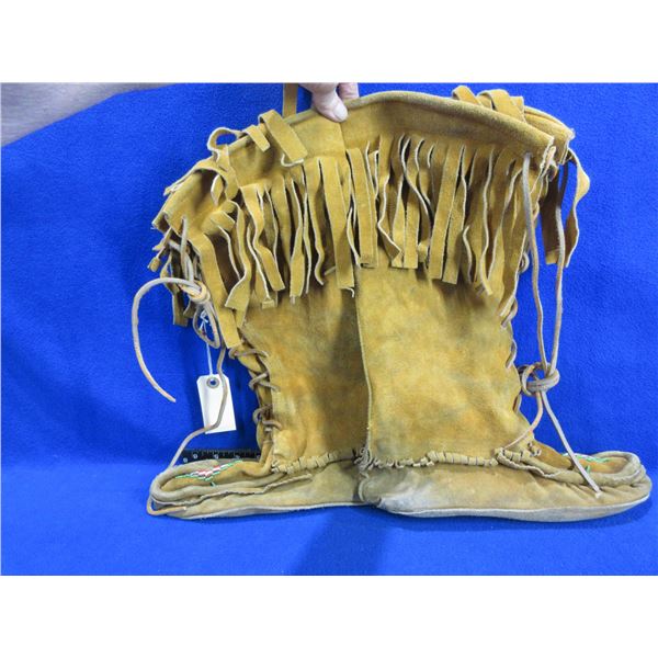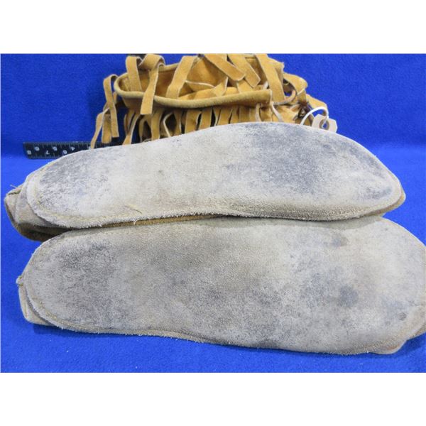 Native American Mocassins with Beadwork and Fringes - 10 1/2" Sole