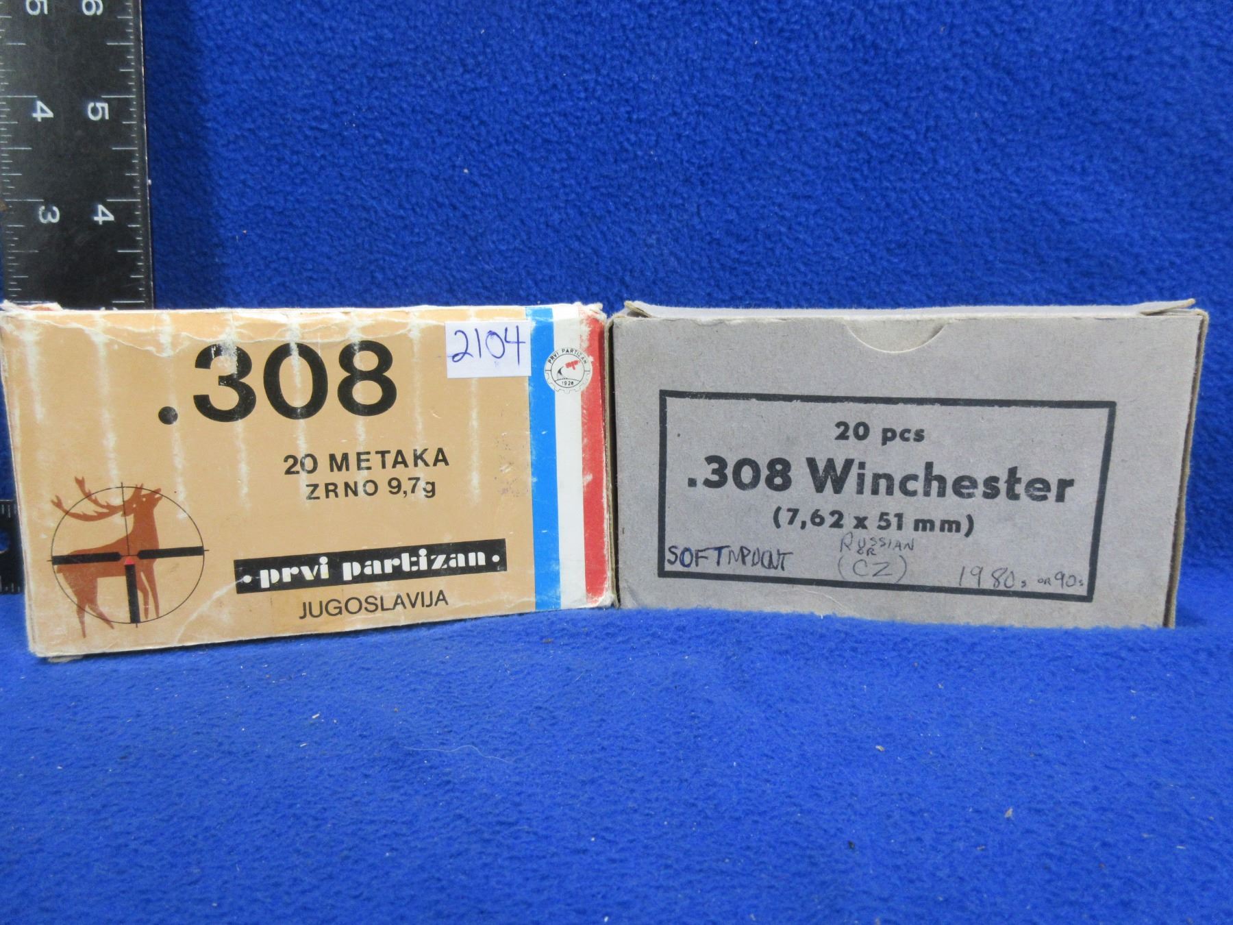 308 Win. Prvi Partizan & Military (Pick Up or Ship by UPS Only) Cartridges - Box of 15 + 5 Brass (Prvi Partizan), Box of 19 + 1 Brass (Appear to be CZ or Russian)