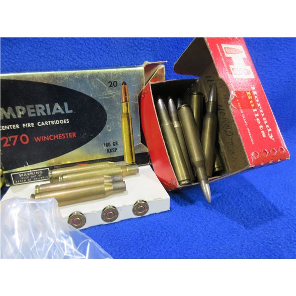 270 Win. Mixed Cartridges (Pick Up or Ship by UPS Only) Factory and Possible Reloads - Box of 20, Box of 10 + 4 Brass, Box of 12 + 5 Brass, Box of 20, Box of 13 and 30-06 (Bag of 10) - Sold as Components