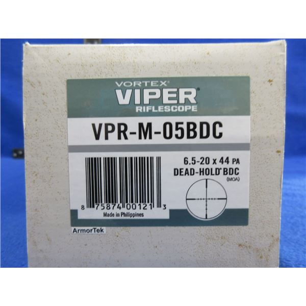 Vortex Viper 6.5-20x44 Scope - 30MM Tube - Appears Clear, Dead-Hold BDC Reticle - Comes with lens covers, 2 extra turret caps and original box