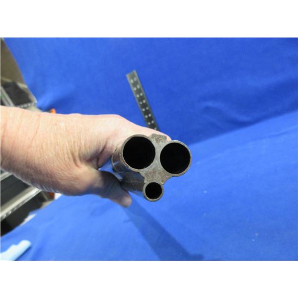 Barrel Only - German Flusstahl Krupp Essen Drilling in 16 Ga./8x57 - Barrels are 26 3/4", solid rib has been cut out in 2 places, bores are good, rifling is good, bluing has some heavy pitting and appears reblued, has front blade front sight, forearm has small chip at the front, has front swivel. Ser. # 115179 - PAL Required