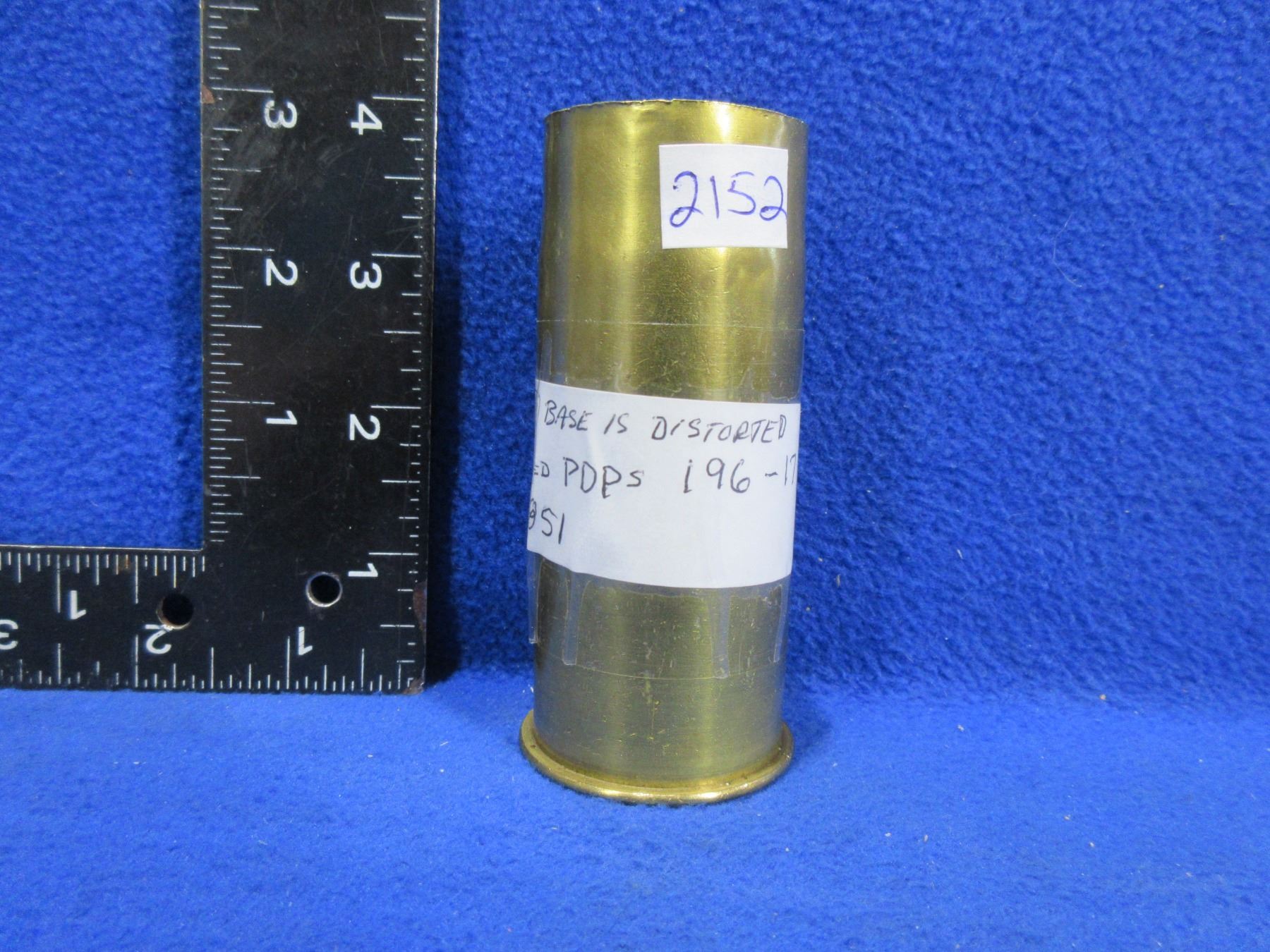 Lot 2152 37MM Brass Shell Casing Marked "PDPs 196 1.17 37-85"