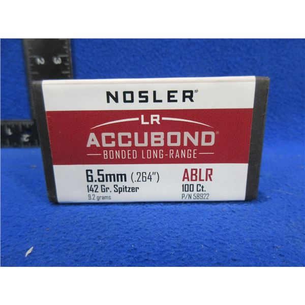6.5MM .264" 142gr Spitzer Nosler LR Accubond Bullets - Sealed Box of 100