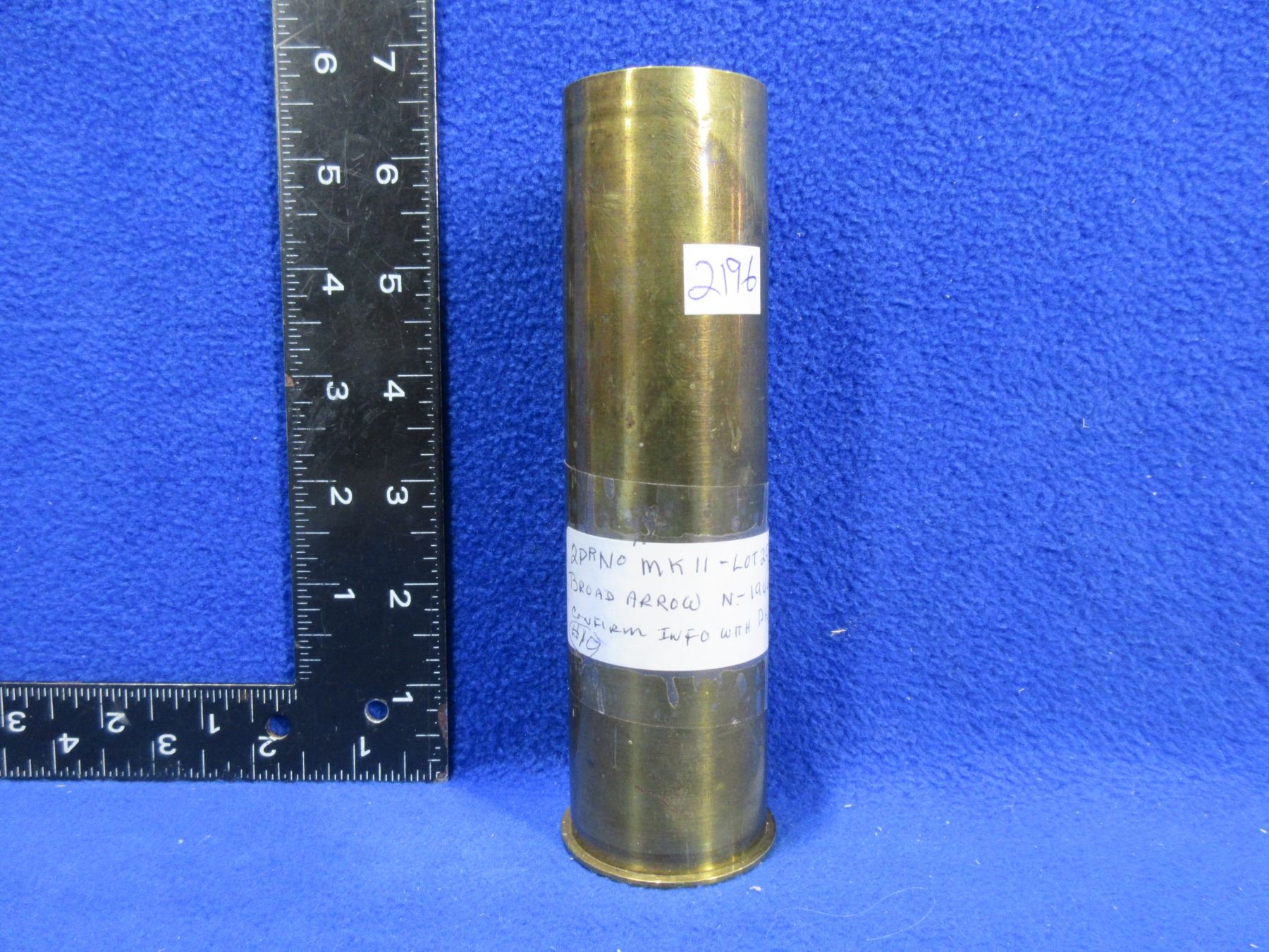Lot 2196 Brass 2 lb Shell Casing - Marked "2Pr No I Mark II 1944 Lot 293