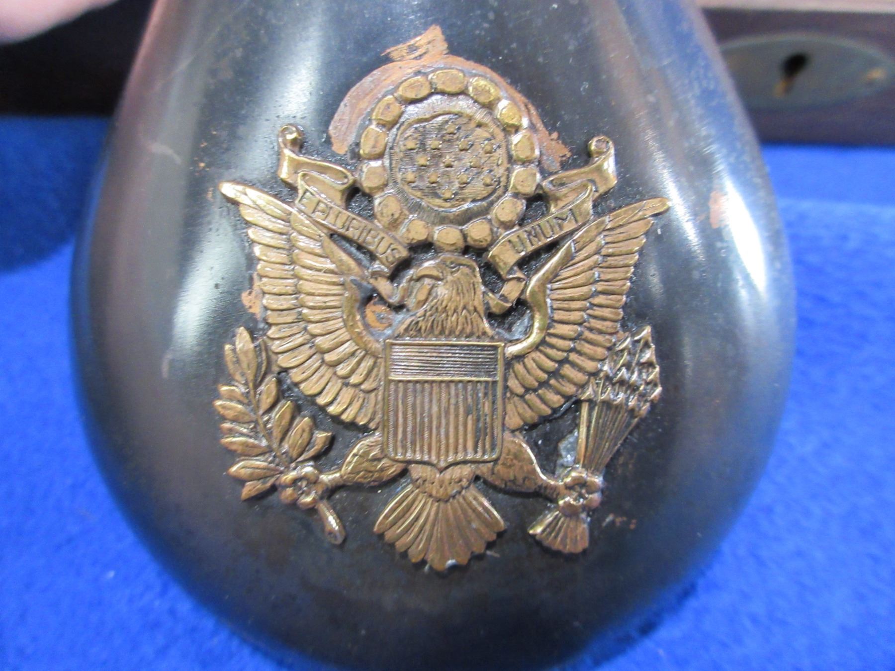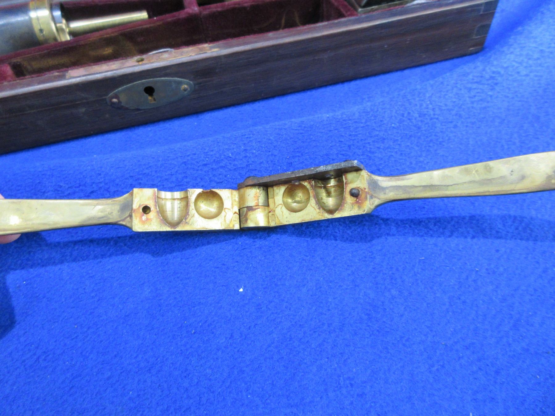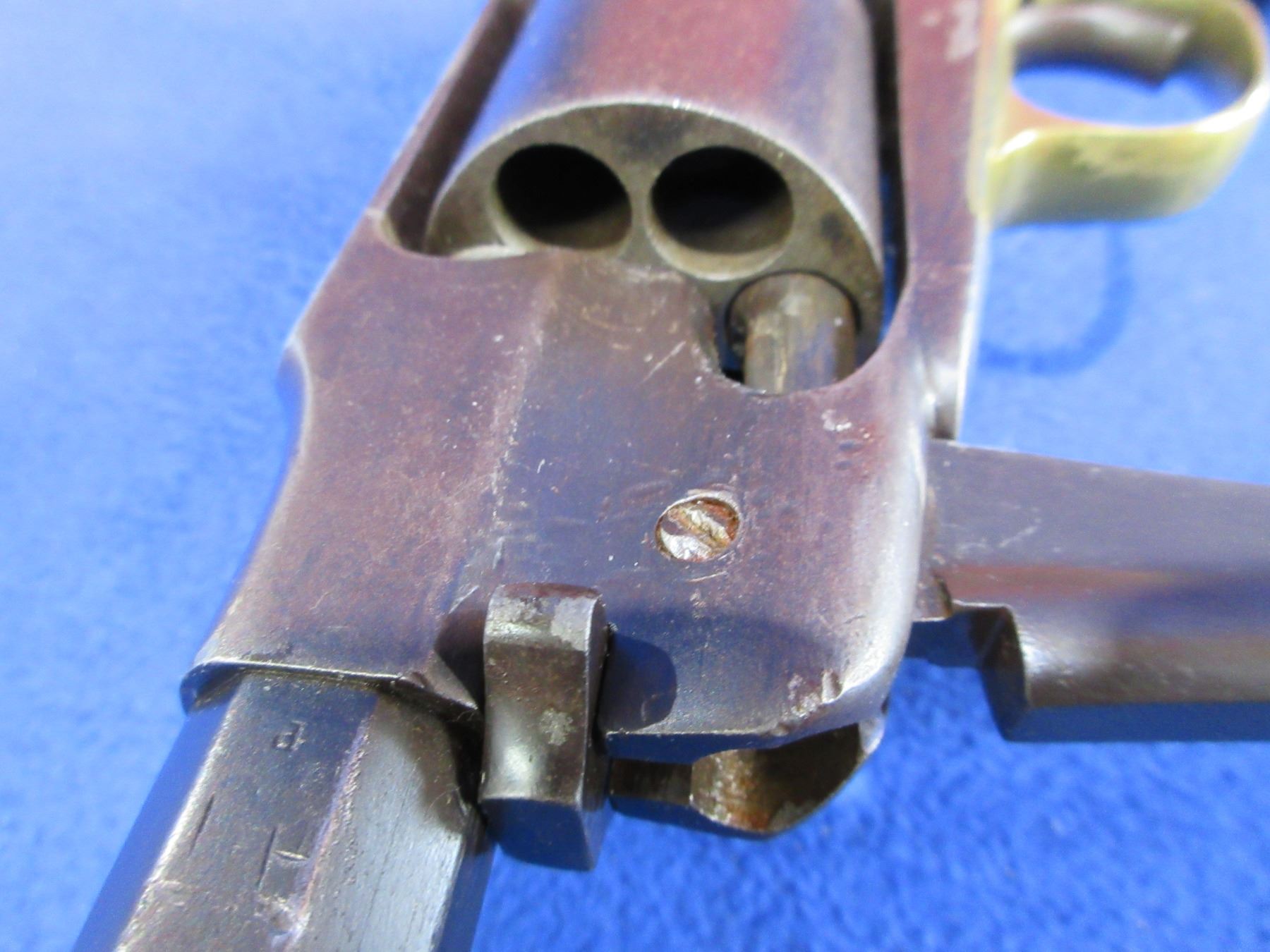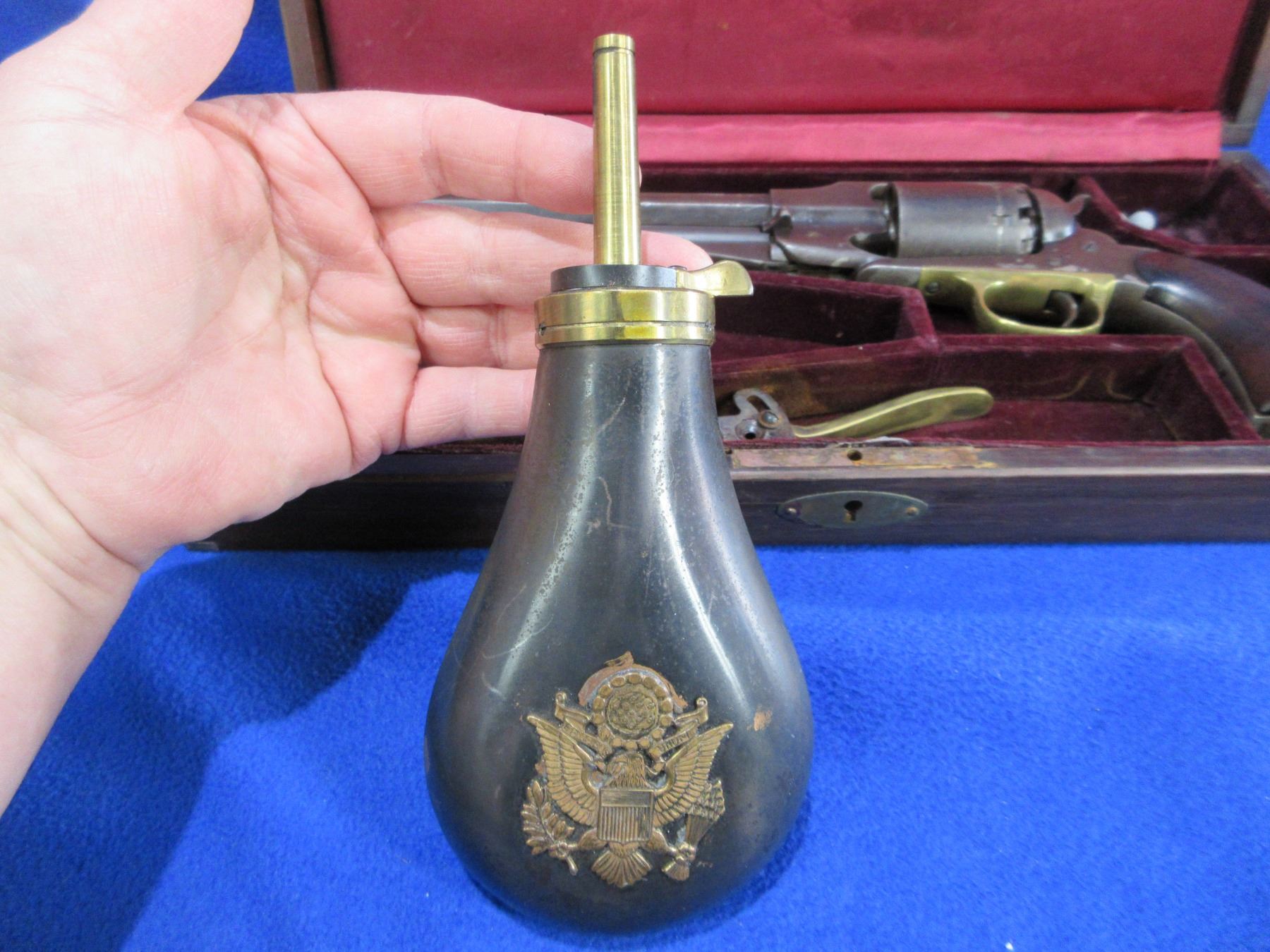 Antique - No PAL Required - Remington New Model 1858 Army in 44 Cal. - Rare and desireable, this is a six shot single action cap and ball revolver, action appears to be in good working order, cylinder lock up has some play. Octagon barrel is 8". rifling is good for age, bluing is has mostly turned brown with wear patches, has both sights, wood grips are good with usual wear, comes with powder horn, bullet mold, lead balls and display case. Ser # 90553.