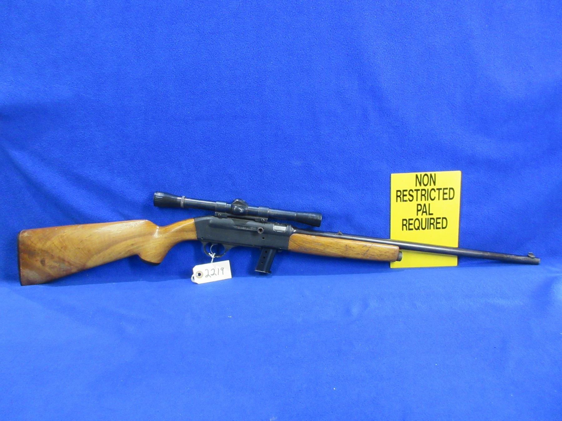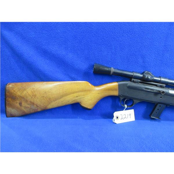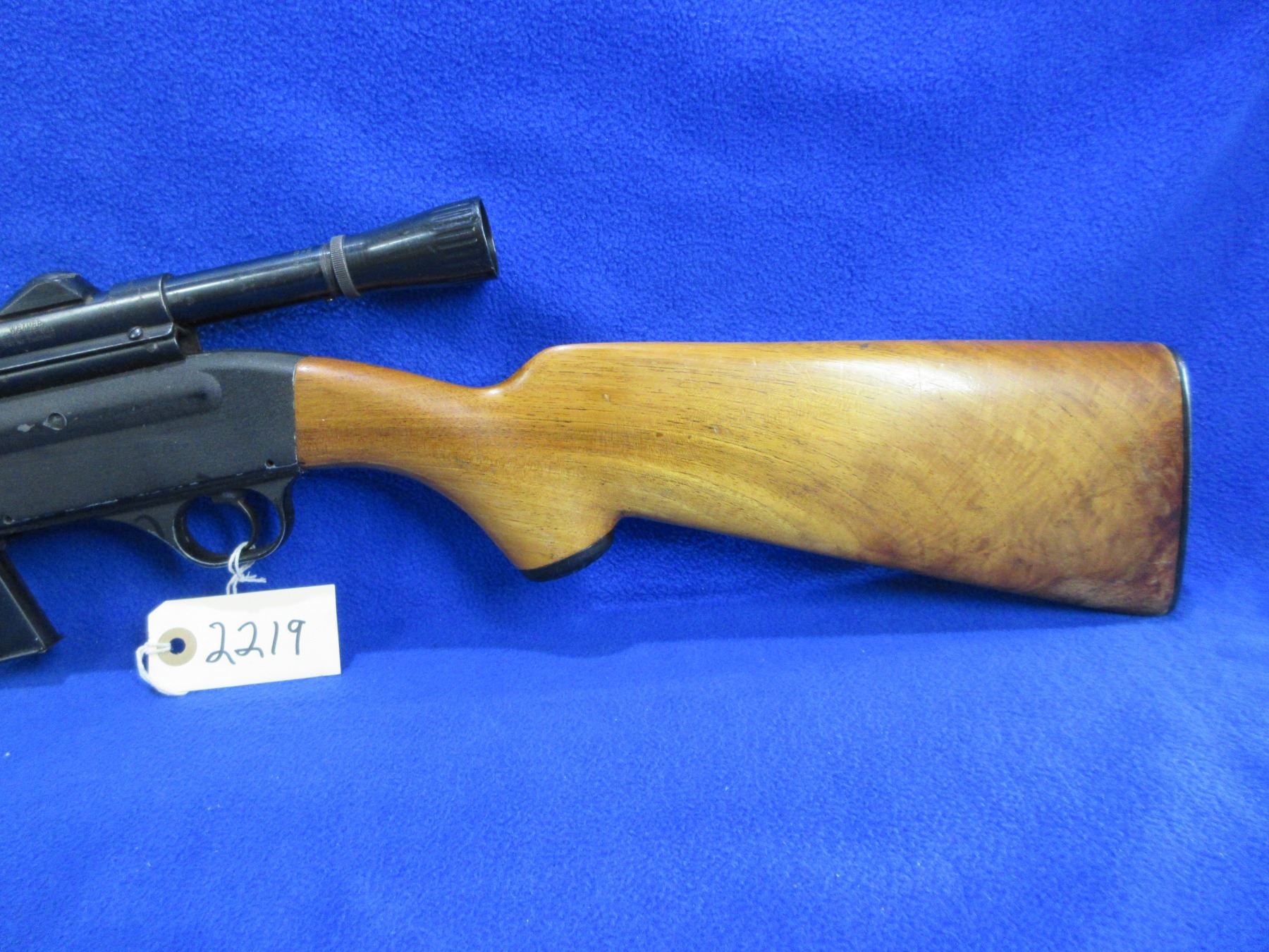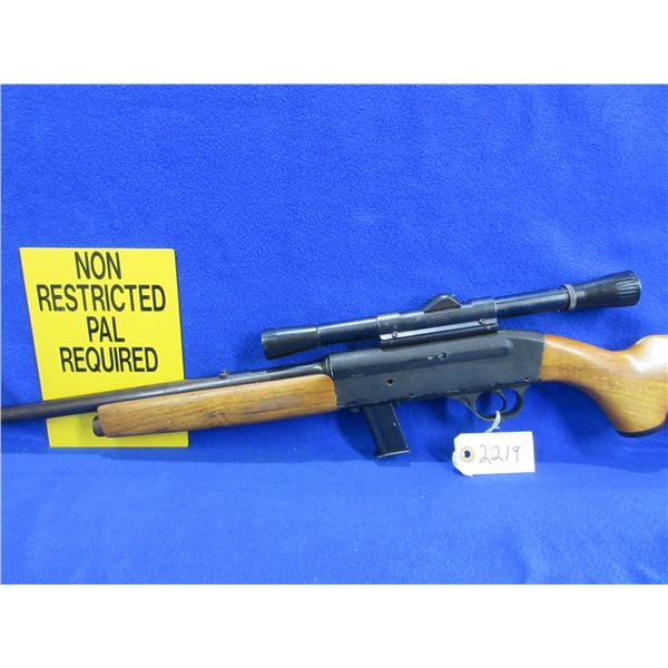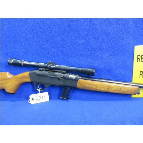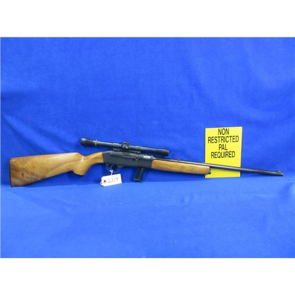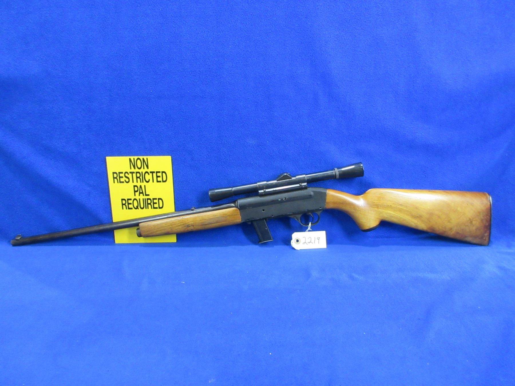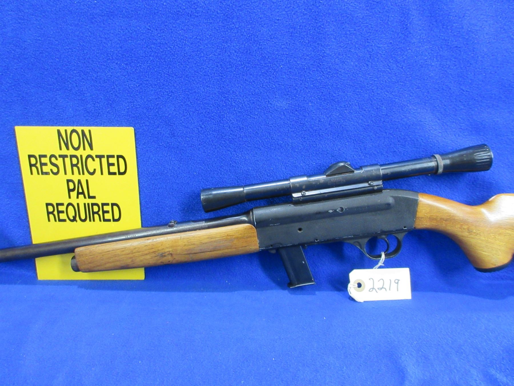 Non-Restricted - Gevarrm Carabine in 22 LR - This is a semi-auto rifle with removable magazine, action appears to be in good working order. Barrel is 19 3/8", rifling is fair to good as may need wet cleaning, bluing is good, has front sight, missing rear sight but has Weaver scope mount and Weaver C6 scope - appears clear - standard reticle (scope and mount have some fine pitting), stock and forearm good with finish flaking, butt plate good. Ser # 113888