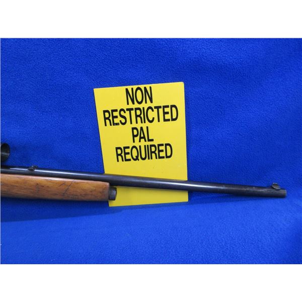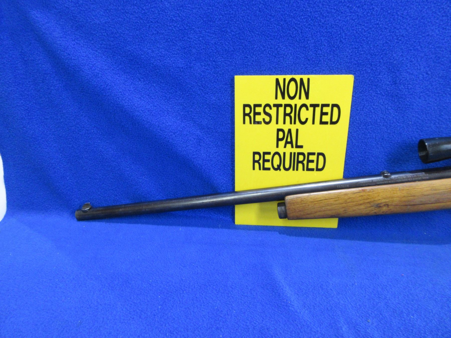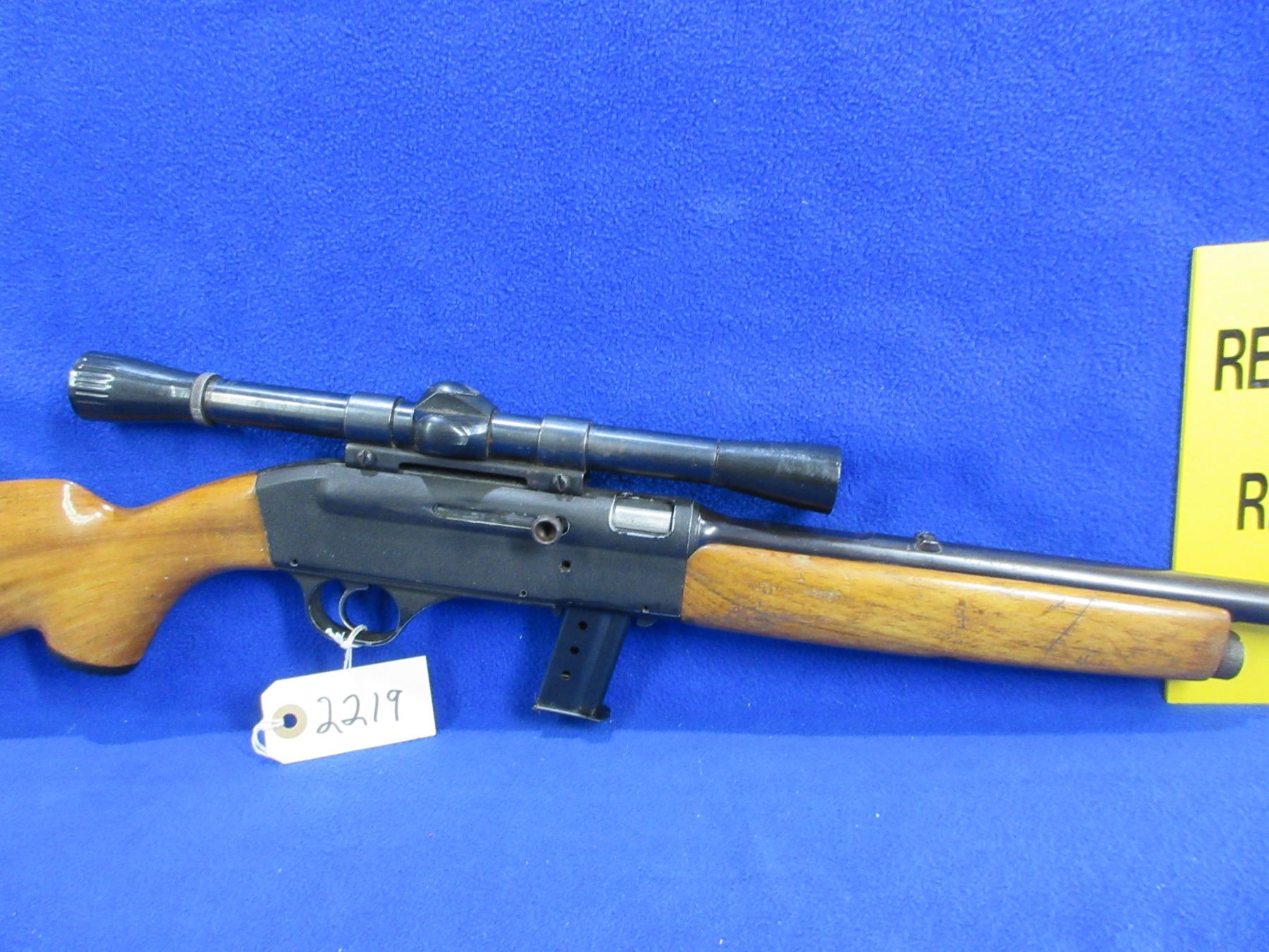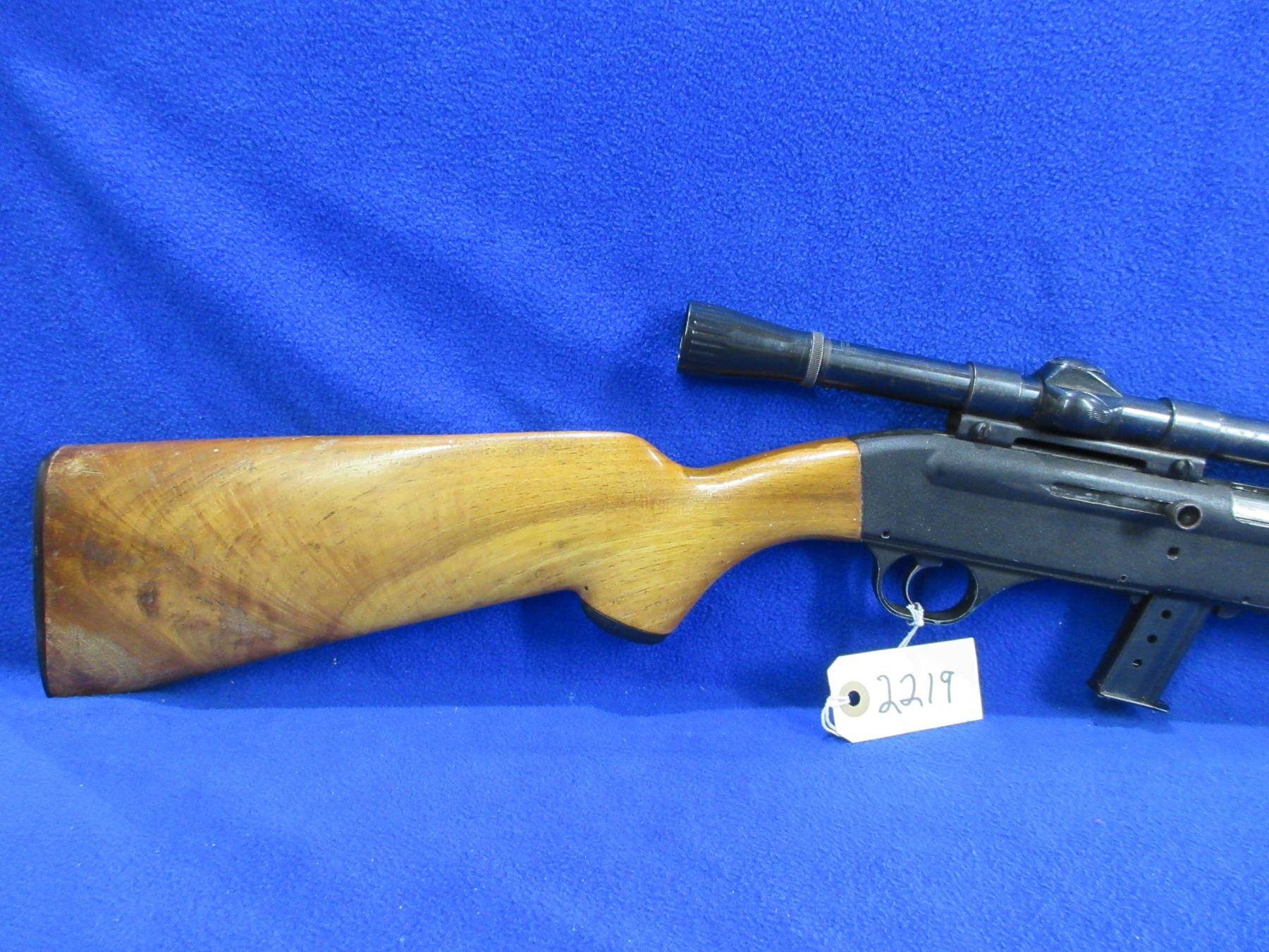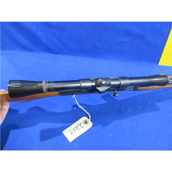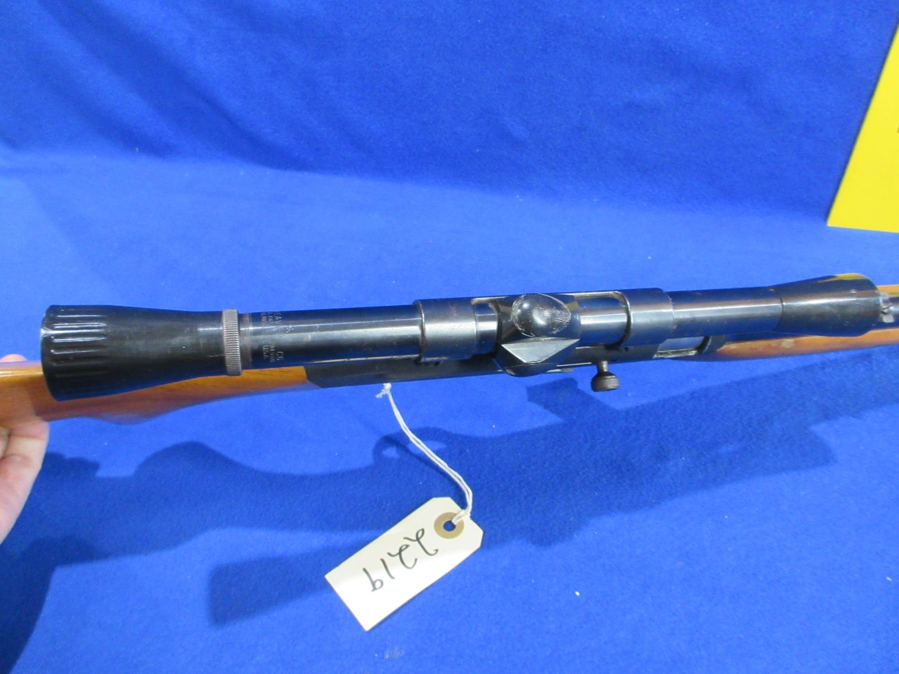 Non-Restricted - Gevarrm Carabine in 22 LR - This is a semi-auto rifle with removable magazine, action appears to be in good working order. Barrel is 19 3/8", rifling is fair to good as may need wet cleaning, bluing is good, has front sight, missing rear sight but has Weaver scope mount and Weaver C6 scope - appears clear - standard reticle (scope and mount have some fine pitting), stock and forearm good with finish flaking, butt plate good. Ser # 113888