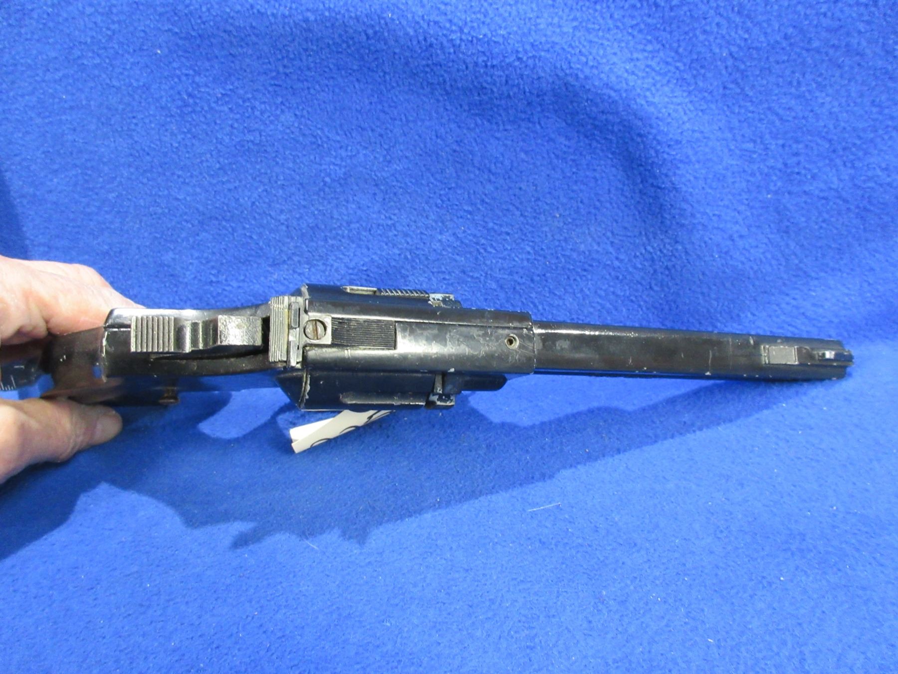 No PAL Required - Crossman Model 38T Revolver in 22 Cal. - This is a single and double action 6 shot CO2 Target Revolver, action appears to be in working order but grip covers are missing. Barrel is 6", rifling has some rust, bluing is fair to good, has both sights, grips are missing. Ser # 278870