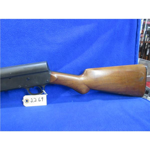 Non-Restricted - Browning A5 by Remington in 12 Ga. 2 3/4" - Produced by Remington during World War II, between 1940 and 1946. This is a semi-auto shotgun, action appears to be in good to very good working order. Barrel is 28", bore is good, bluing is good but turning grey, has bead front sight, stock is good to very good with many usage marks, forearm is good to very good with many usage marks, butt plate is broken at the toe. Ser #78506