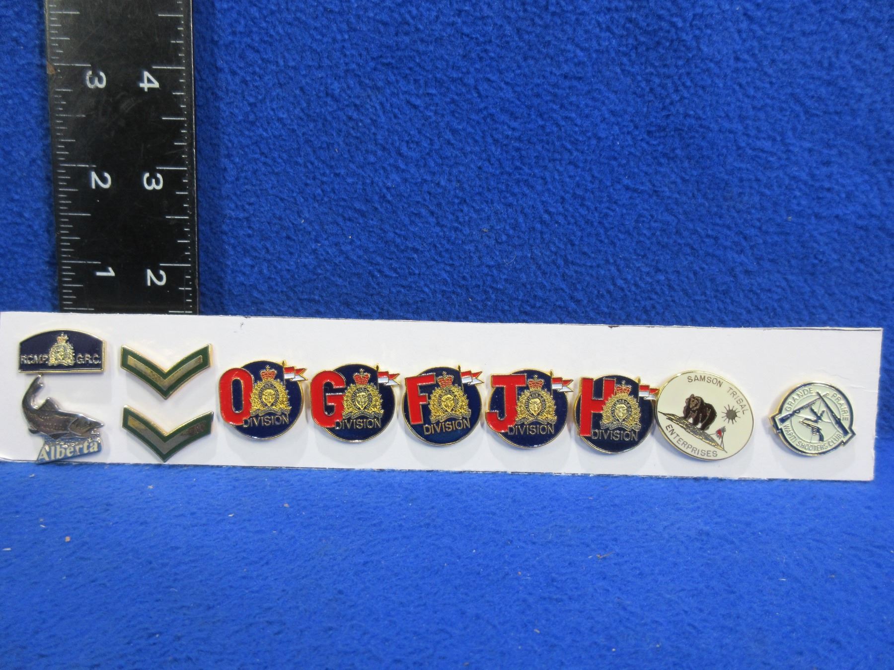Lot 2274 10 Vintage Pins - RCMP, Alberta, Samson Tribal Enterprises, Etc.
