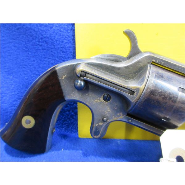 Antique - No PAL Required - Merwin & Bray in 42 Cal. - Rare and desireable, this is a six shot single action revolver, action appears to be in good to very good working order. Barrel is 5 1/4". rifling is good to very good, bluing on barrel is fair to good, gold like finish on the action is fading or gone, has both sights, wood grip is good to very good. Ser # 7467