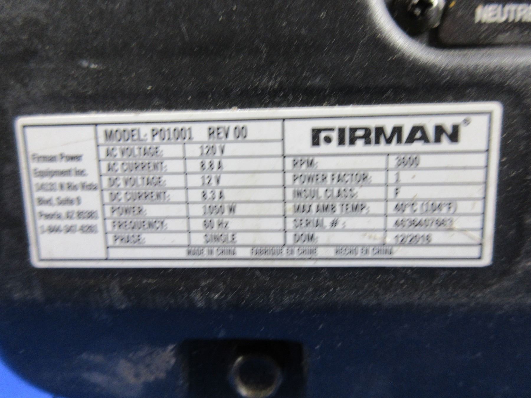 Firman P01001 1300/1050 Watt Recoil Start Gas Portable Generator - PICK UP ONLY - Tested working at time of cataloging