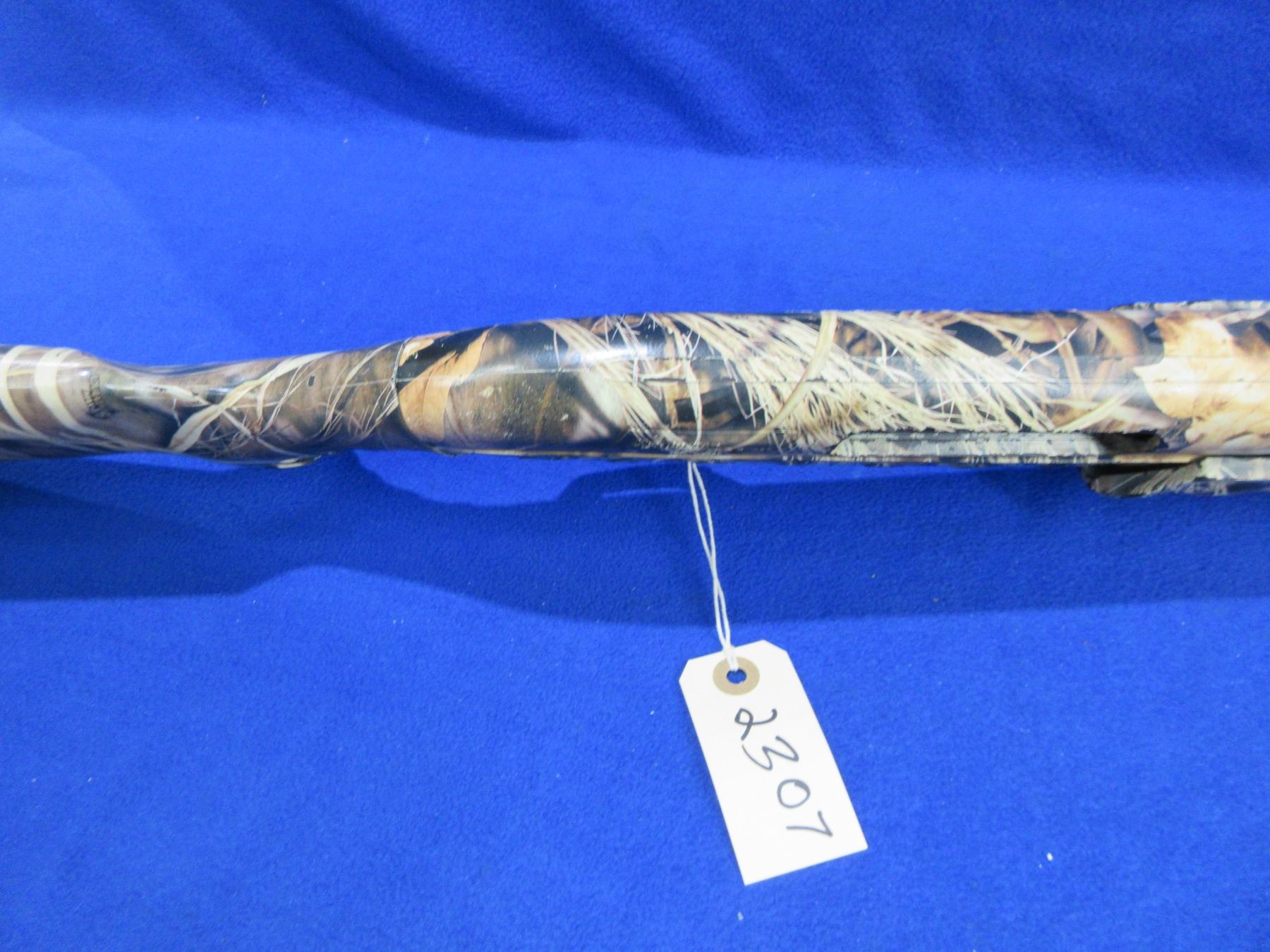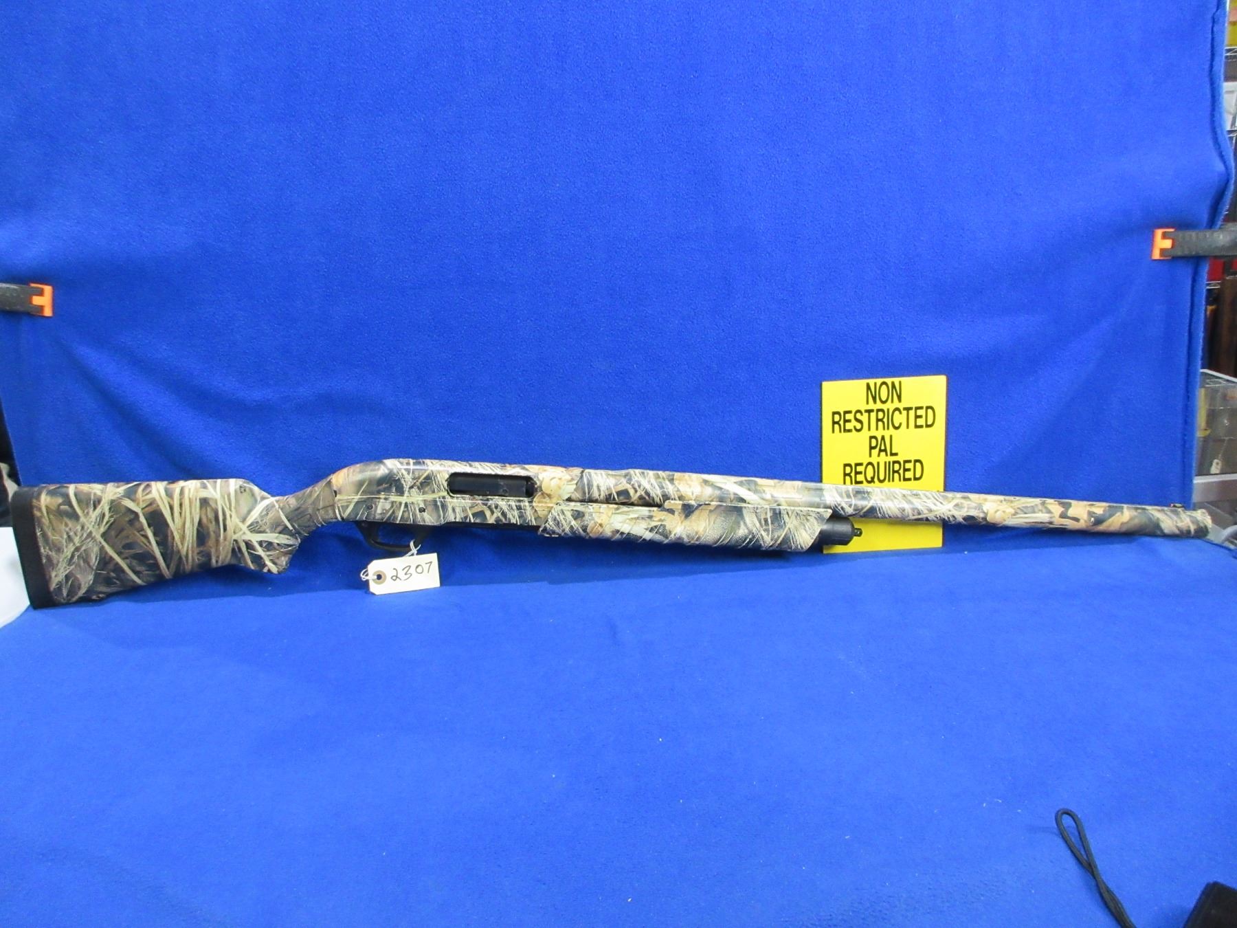 Non-Restricted - Remington Model 887 in 12 Ga. 2 3/4" to 3 1/2" - This is a pump action shotgun with removable choke, action appears to be in good to very good working order. Barrel is 28", bore is good to very good, Mossy Oak Advantage Max-4 camo finish is good with some wear around trigger guard, has fiber optic front sight, synthetic stock is good to very good, forearm is good to very good, rubber recoil pad good , somes with swivel studs. Ser # AAE035220A