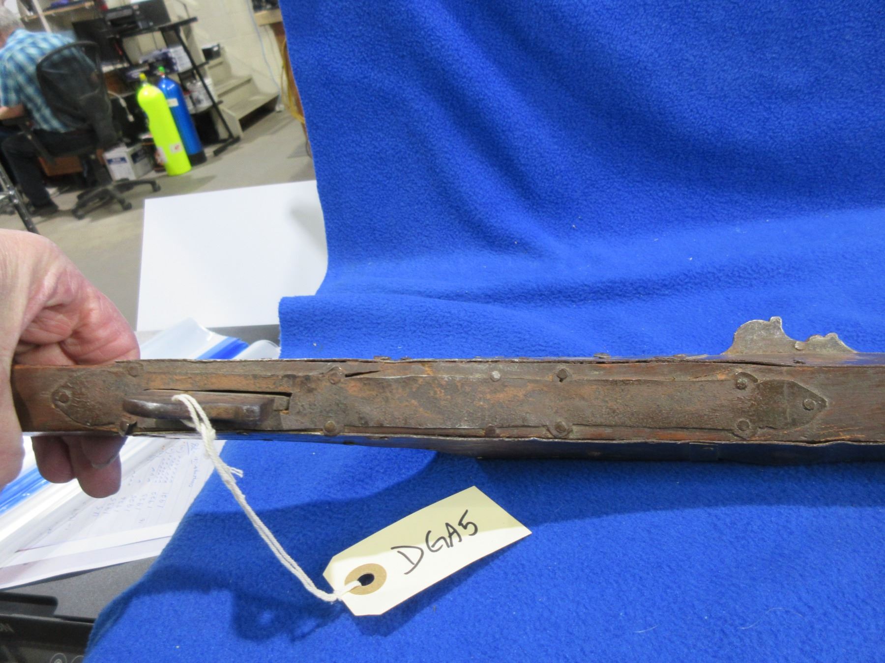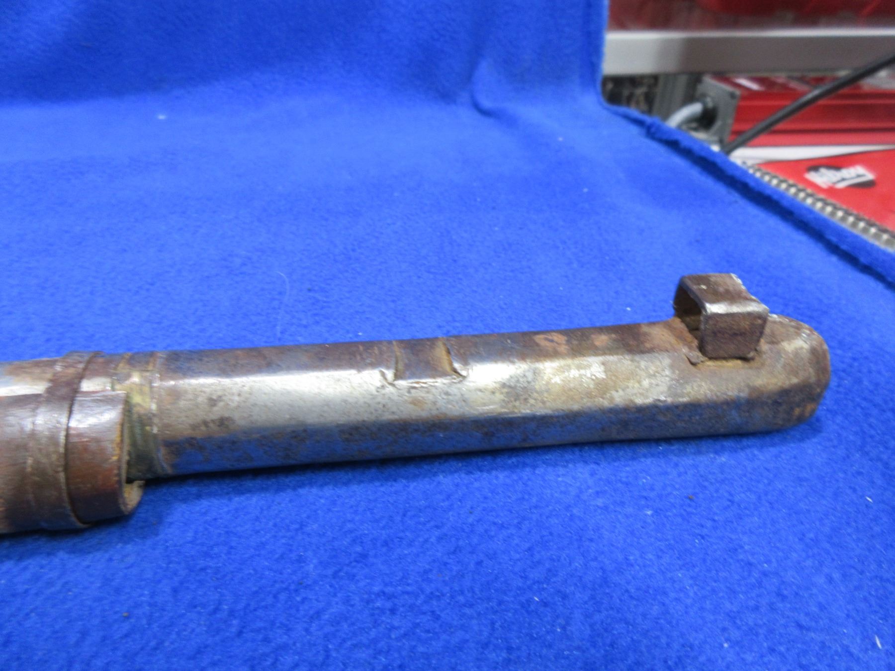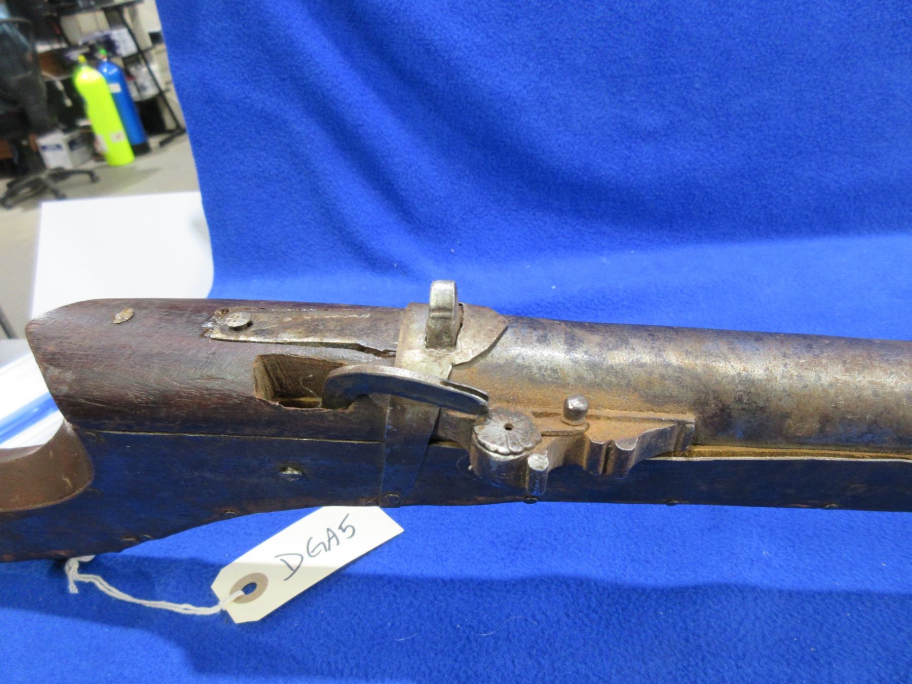 Antique - No PAL Required - Indian Matchlock Musket - This muzzleloading single-shot rifle appears to be from the Sing region of India and would be a nice wallhanger, trigger is working but action is missing parts. Barrel is 35" and has dents, Bore has rust and pitting, finish has rust and pitting, missing front sight, rear sight is broken, stock is good for age, missing 1 barrel band.