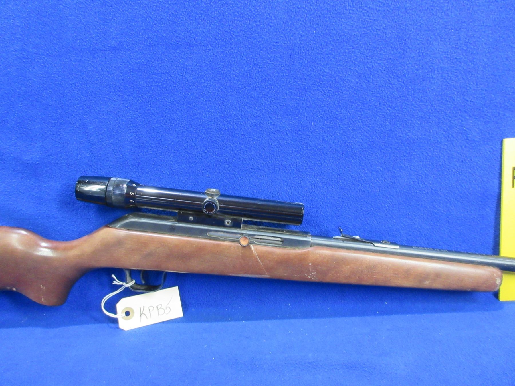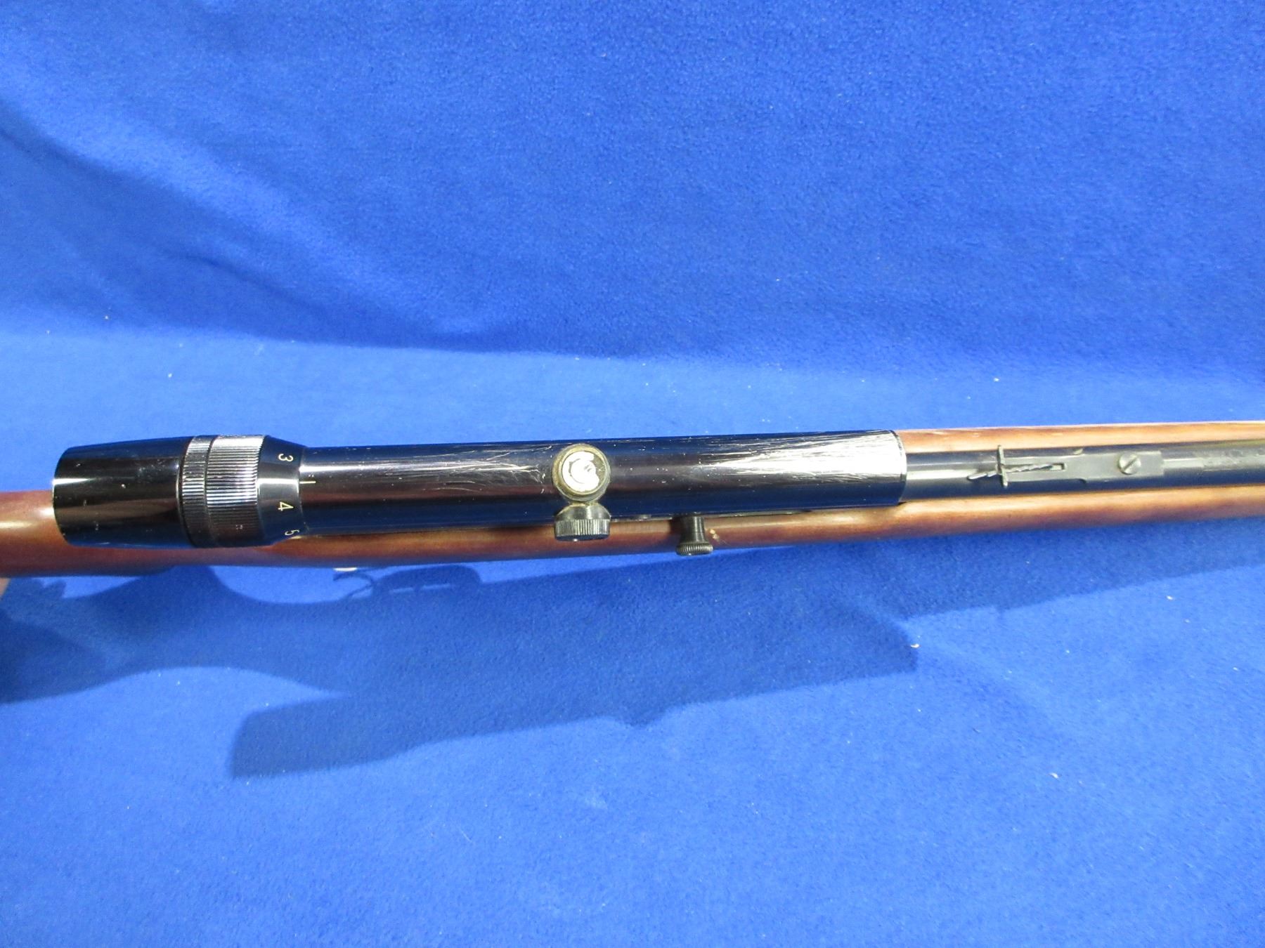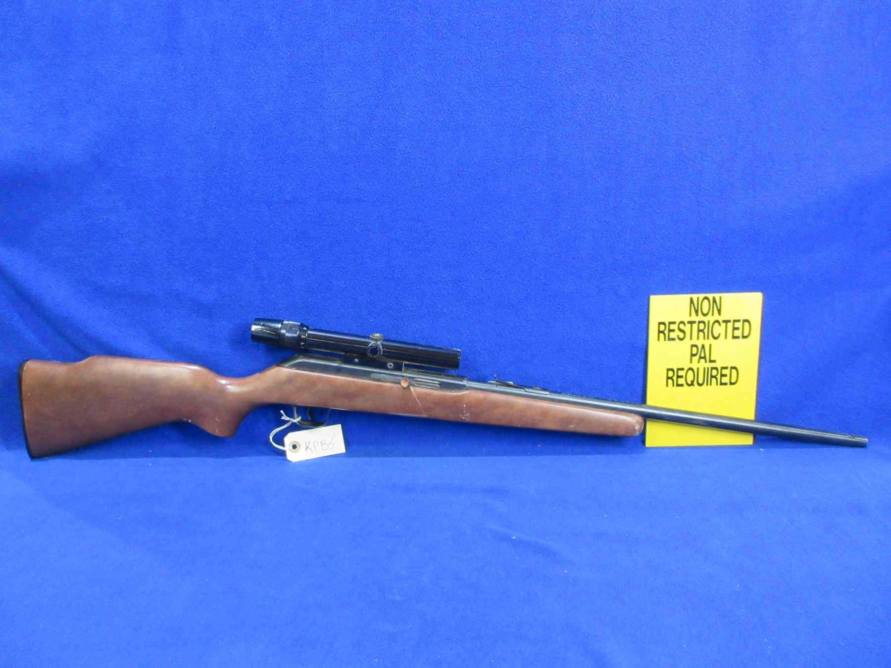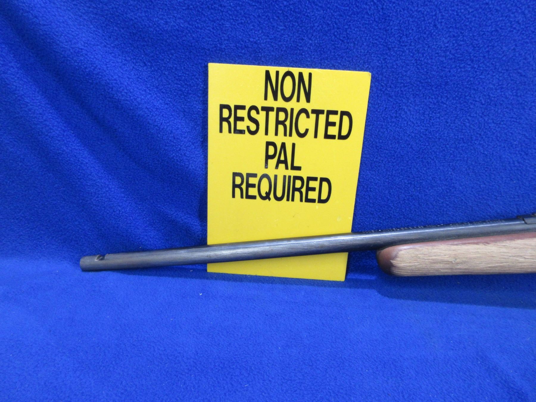 Non-Restricted - Cooey Model 64B in 22 LR - This is a semi-auto rifle with removable magazine (magazine missing), action appears to be in good to very good working order. Barrel is 20", rifling is good to very good, bluing is mostly gone on left side, has rear sight but front sight missing and has Bushnell Scopechief 3x-9x Twenty Two scope (has damage) - appears clear - standard reticle, stock has scratch damage on left at foreend, butt plate good. This gun looks like it has been dragged as the scope, barrel and stock all gave drag marks. Ser # CA122574