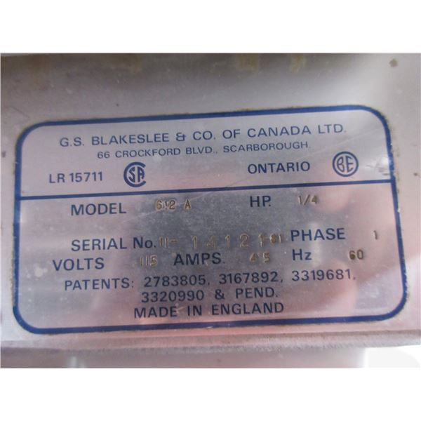 G.S. Blakeslee & Co. Model 612A Meat Slicer - 1/4 HP - Has a crack on the bottom tray - Tested working at time of cataloging