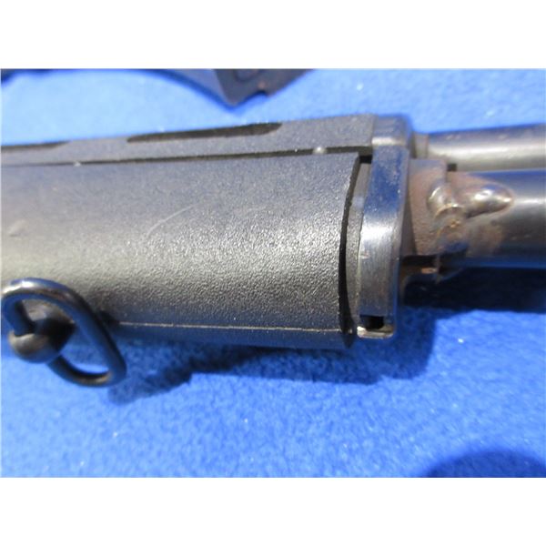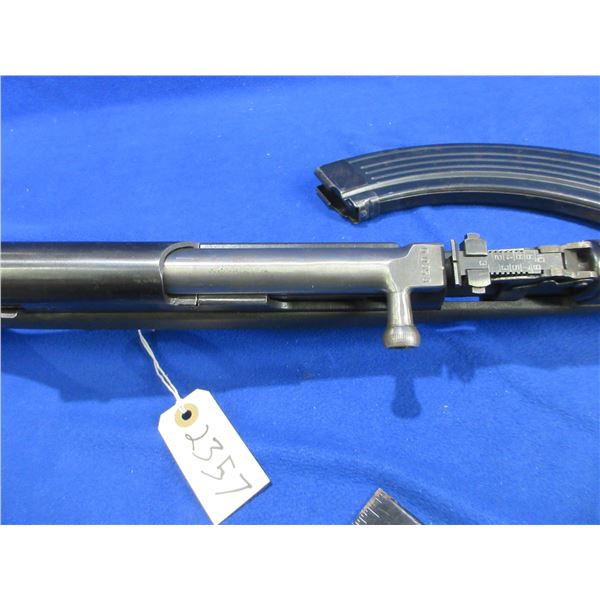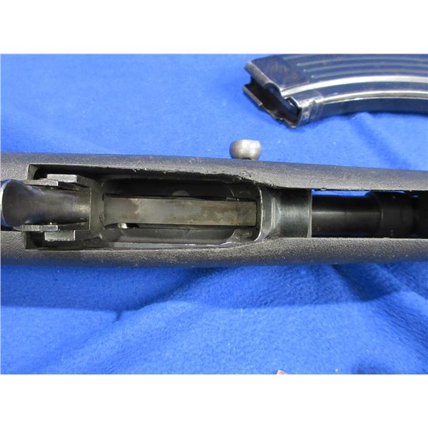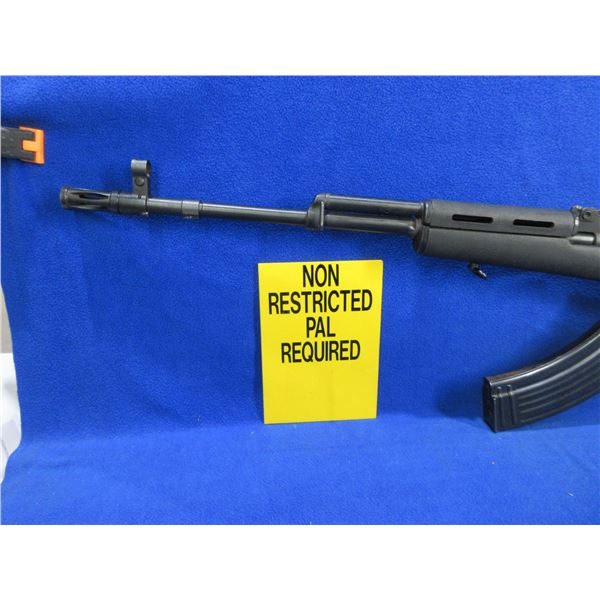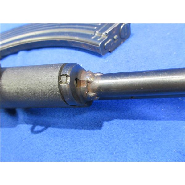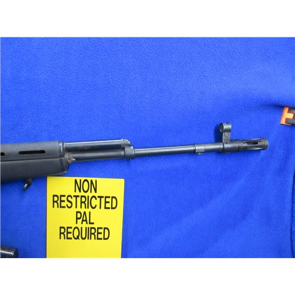 Non-Restricted - Chinese SKS in 7.62x39 - May be an SKs "D". This is a semi-auto rifle with removable magazine - pinned at 5, action appears to be in good working order but the bolt hold open does not work. Barrel is 20 1/2" - there is welding by the flash suppressor, grinding on bayonet mount, forearm mount has been welded as well. Rifling is good to very good, bluing is good as is welded, has both sights, synthetic stock is good to very good but is not tight to the barrel and action, rubber recoil pad good, comes with swivels. Ser # 9500858
