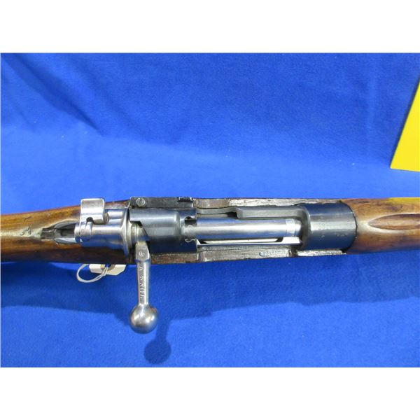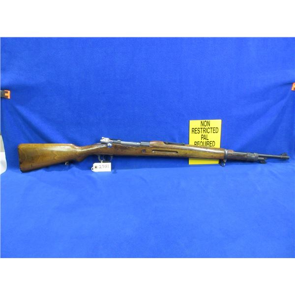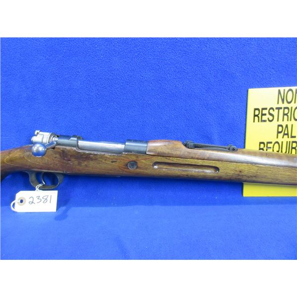 Non-Restricted - Spanish 43 Mauser made 1951 is stamped 7.92 on barrel. Should be the same as (8MM) - This is a bolt action rifle with floor plate, action appears to be in good to very good working order. Barrel is 23 3/4", rifling is good but a bit dark, bluing is good to very good, has both sights, stock is good to very good, metal butt plate good, comes with swivels. Rifle appears not numbers matching. Ser # R-6010
