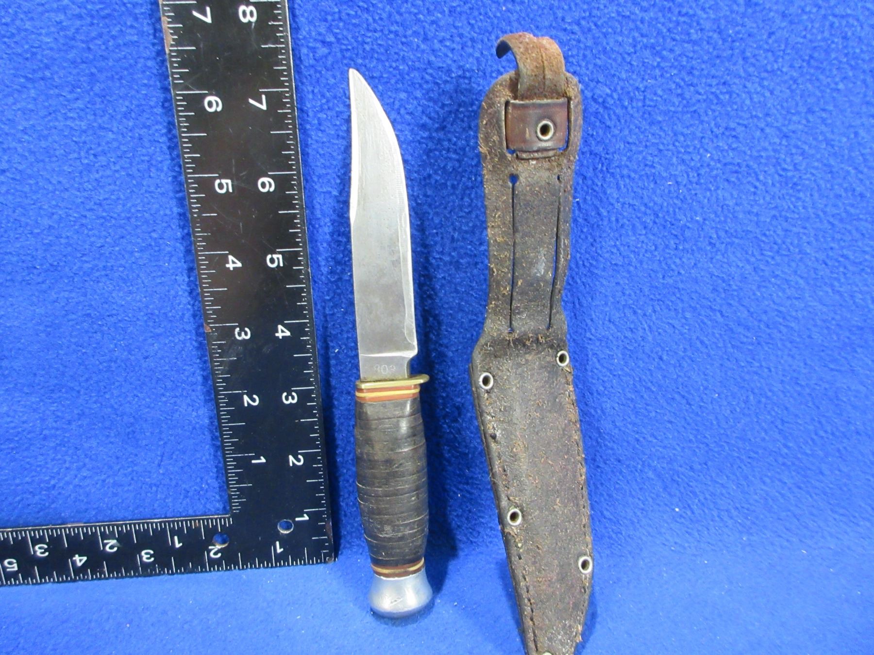Lot 2382 Vintage Fixed Blade Knife with Leather Sheath